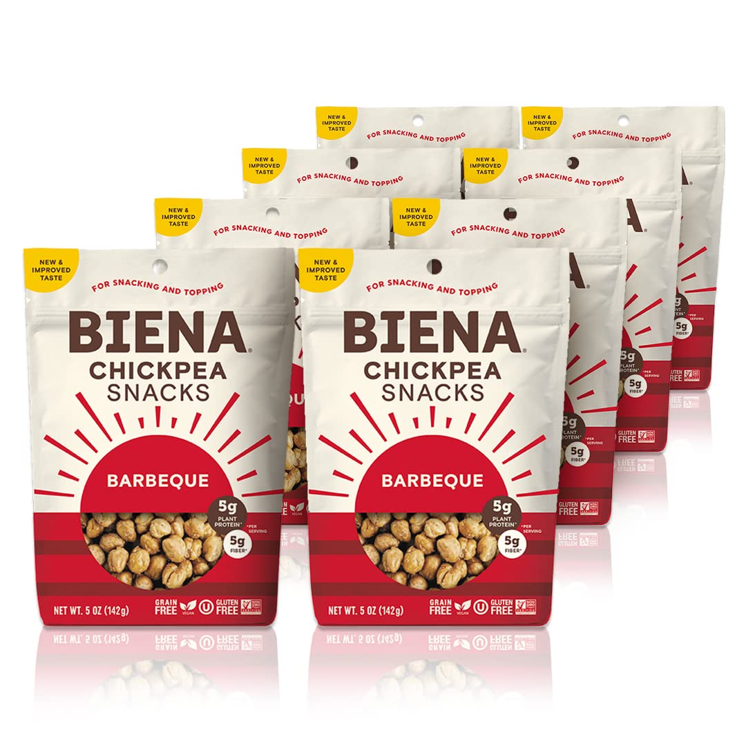 Biena Crispy Roasted Chickpea Snacks, Barbecue, High Protein Snacks, High Fiber Snacks, Gluten Free, Plant-Based, Non-Gmo, Healthy Snacks For Adults And Kids, 8-Pack 5 Ounce Bags