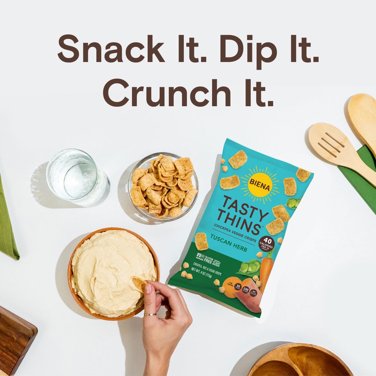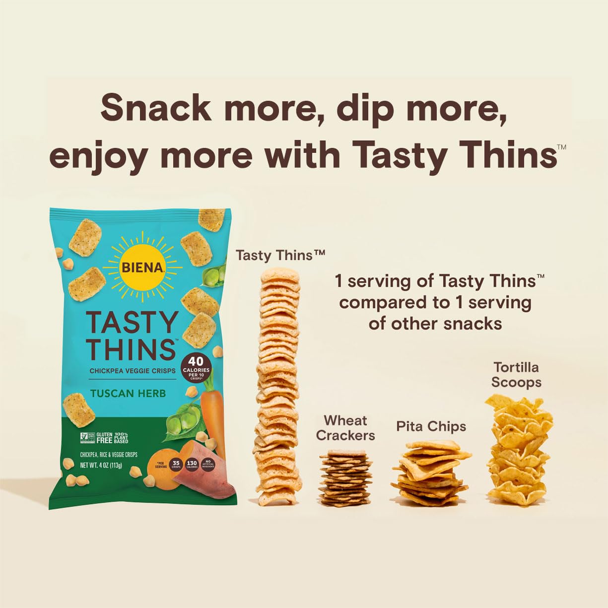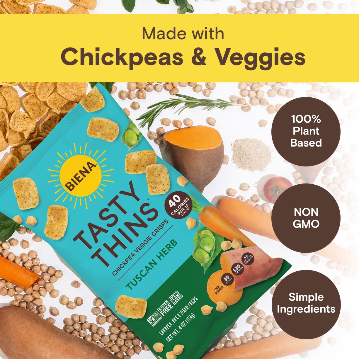 Biena Tasty Thins Veggie Crisps – Tuscan Herb, 4-Pack, 4 Oz Bags – Chickpeas & Veggies, Vegan, Gluten Free, Dairy-Free, Non-Gmo, Allergy-Friendly, Healthy Snacks For Adults And Kids