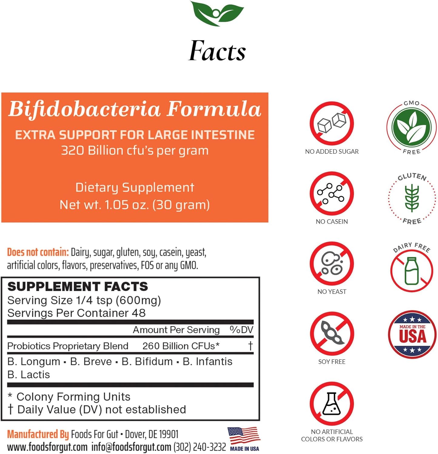 Bifido Formula 320 Billion Cfu'S | Made In Usa | Digestive & Immune Support | May Help Leaky Gut Repair | 30 Grams (1.05 Oz)