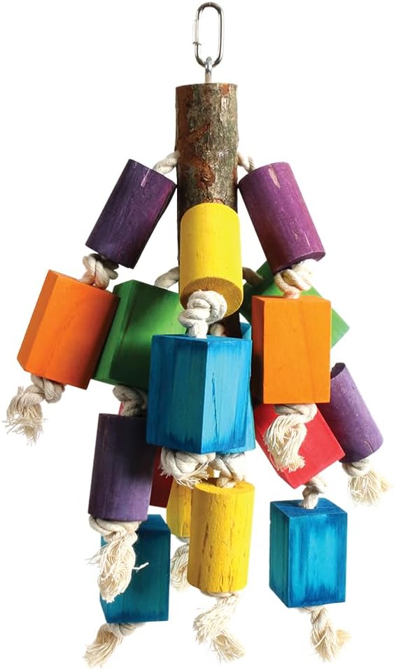 Has chunky blocks and cylinders to keep beaks healthy and trim