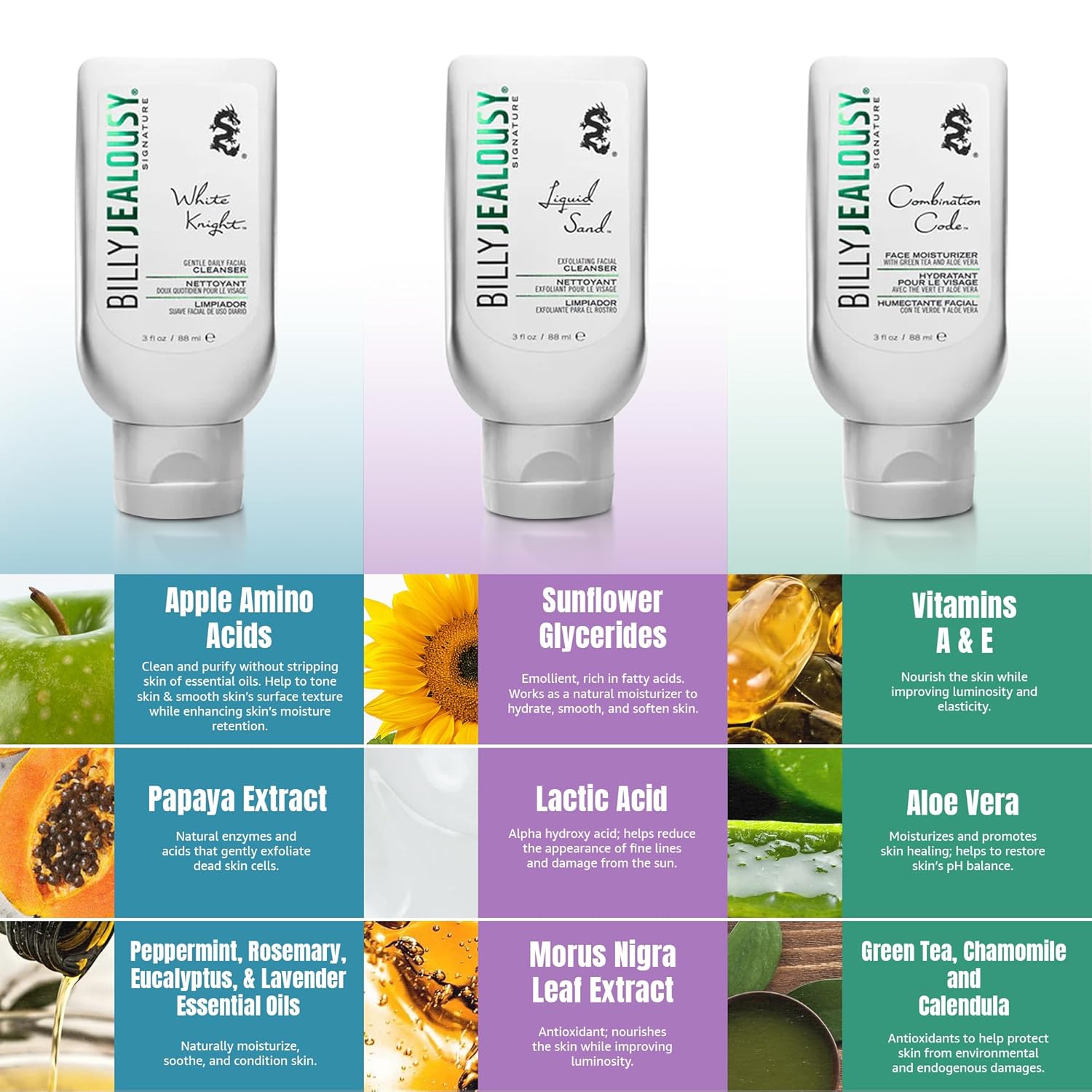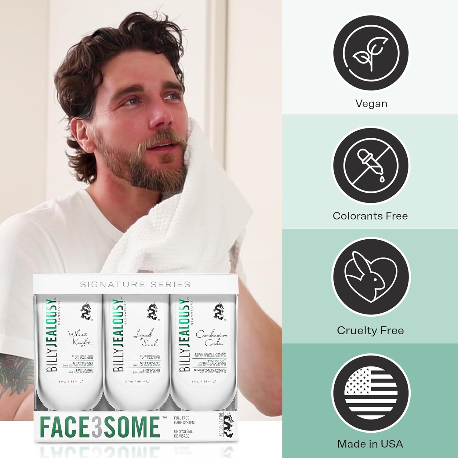 Billy Jealousy Face3Some Face Trio Vegan Mens Skin Care Kit With Travel Size Toiletries, Daily Facial Cleanser, Exfoliating Facial Cleanser And Skincare Moisturizer, Gentle Fresh Scent