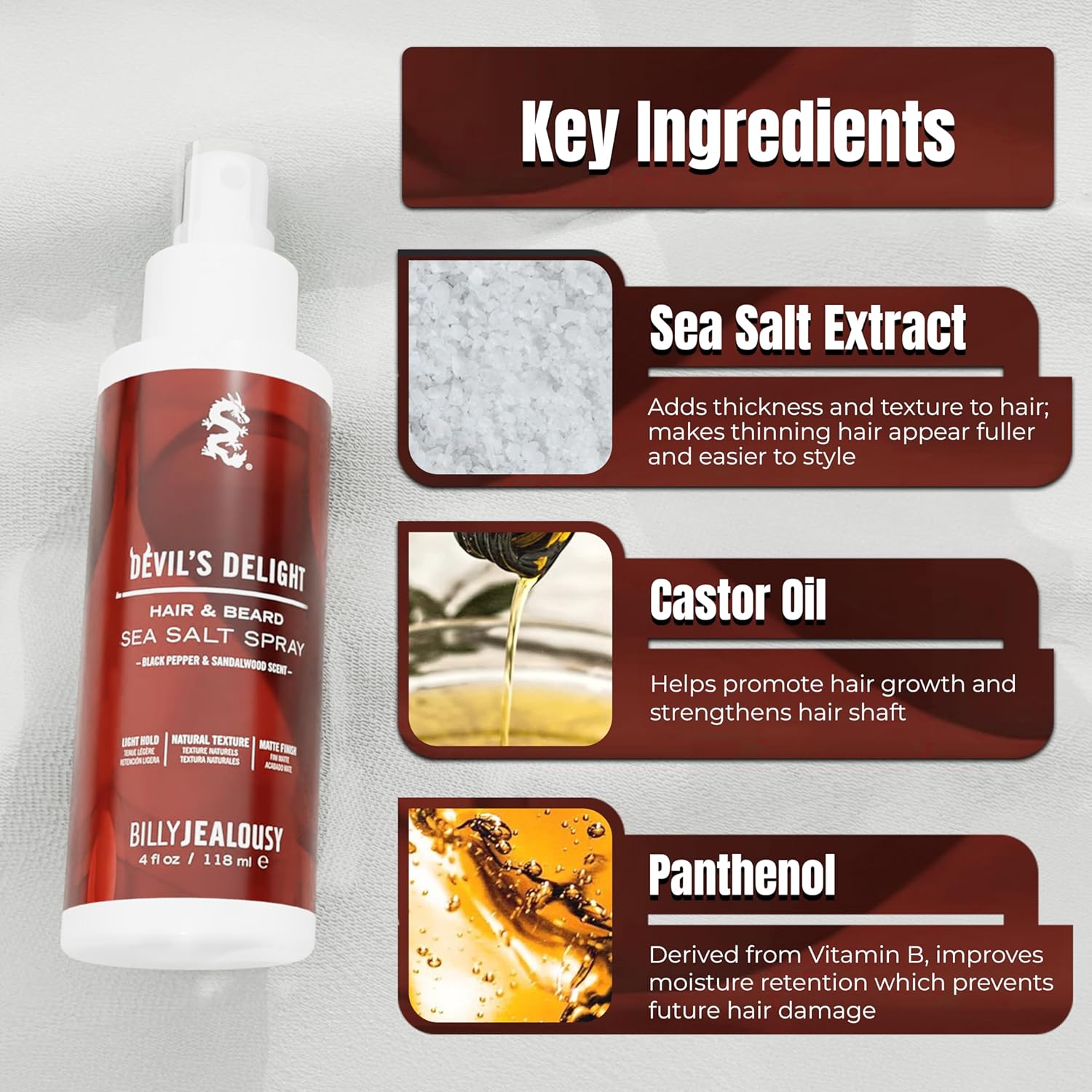 Billy Jealousy Sea Salt Spray, Texturizing and Volumizing Hair Spray for All Hair Types and Beard Lengths