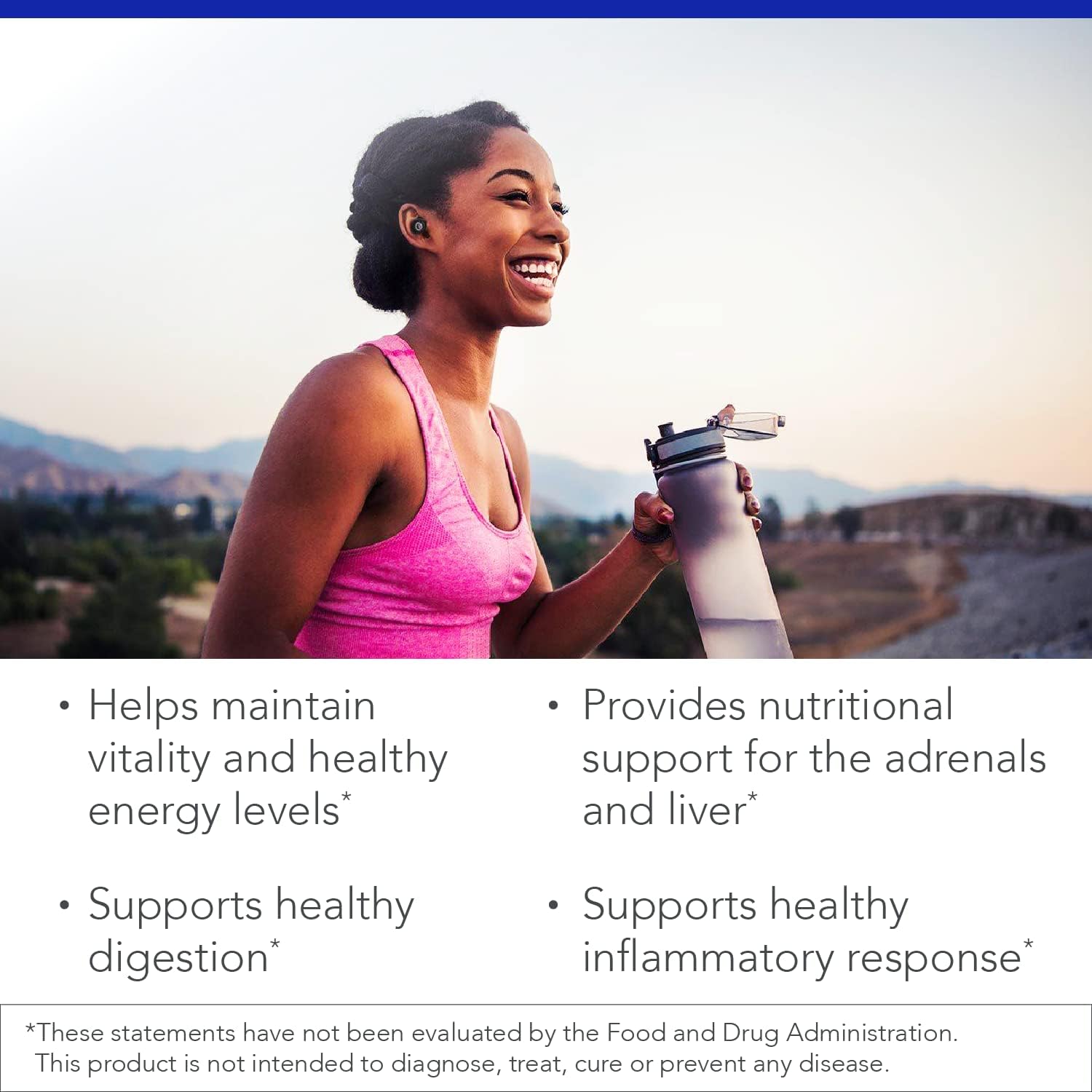 Helps maintain vitality and healthy energy levels. Provides nutritional support for the adrenals and liver. Supports gut health and offers immune support