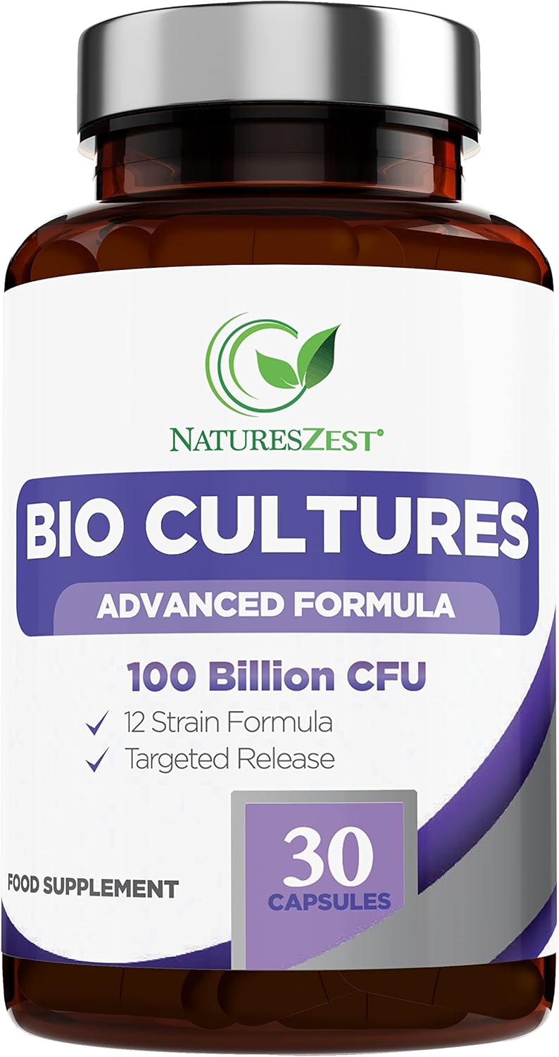 About this item PROBIOTIC COMPLEX: Our Bio Cultures Complex Probiotics has 12 key strains. Our probiotic supplement has been formulated to be one of the most comprehensive probiotics available containing well researched strains such as Lactobacillus plantarum, Saccharomyces boulardii, Bifidobacterium probiotics including Bifidobacterium infantis & Bifidobacterium longum to help support gut health. Our probiotic is made from 100 Billion CFU source powder and are shelf-stable without the need for refrigeration. WITH PREBIOTICS: Give your digestive system support and help restore your natural balance with our bio-cultures complex. Our high strength 100 Billion CFU prebiotics and probiotics for women and men offers all the benefits of bio cultures supplement combined with prebiotics in an easy to take vegan capsule. BALANCED FORMULA - Our proprietary probiotic formula contains key friendly bacterial strains including lactobacillus gasseri, lactobacillus rhamnosus, lactobacillus plantarum and a bifidobacterium probiotic blend in a specially formulated bio-cultures complex. Natures Zest Bio Cultures Complex is a comprehensive daily probiotic supplement to help provide natural digestive support. UK MADE: Our Premium Bio Cultures Complex is formulated and produced in the UK for quality assurance. Natures Zest Bio Cultures Complex probiotics with prebiotics is produced in GMP Registered facility in the UK under strict conditions. All our raw materials and ingredients are checked and tested to ensure that they meet the highest GMP and hygiene standards. VEGAN PROBIOTIC: Our Bio Cultures Complex 100 Billion CFU vegan probiotics are suitable for both vegans and vegetarians. Natures Zest is committed to providing you with the purest and highest quality products. Each serving is free from artificial colours and GMOs. Natures Zest Bio Cultures prebiotics and probiotics is for adults. › See more product details,PROBIOTIC COMPLEX: Our Bio Cultures Complex Probiotics has 12 key strains. Our probiotic supplement has been formulated to be one of the most comprehensive probiotics available containing well researched strains such as Lactobacillus plantarum, Saccharomyces boulardii, Bifidobacterium probiotics including Bifidobacterium infantis & Bifidobacterium longum to help support gut health. Our probiotic is made from 100 Billion CFU source powder and are shelf-stable without the need for refrigeration,WITH PREBIOTICS: Give your digestive system support and help restore your natural balance with our bio-cultures complex. Our high strength 100 Billion CFU prebiotics and probiotics for women and men offers all the benefits of bio cultures supplement combined with prebiotics in an easy to take vegan capsule,BALANCED FORMULA - Our proprietary probiotic formula contains key friendly bacterial strains including lactobacillus gasseri, lactobacillus rhamnosus, lactobacillus plantarum and a bifidobacterium probiotic blend in a specially formulated bio-cultures complex. Natures Zest Bio Cultures Complex is a comprehensive daily probiotic supplement to help provide natural digestive support,UK MADE: Our Premium Bio Cultures Complex is formulated and produced in the UK for quality assurance. Natures Zest Bio Cultures Complex probiotics with prebiotics is produced in GMP Registered facility in the UK under strict conditions. All our raw materials and ingredients are checked and tested to ensure that they meet the highest GMP and hygiene standards,VEGAN PROBIOTIC: Our Bio Cultures Complex 100 Billion CFU vegan probiotics are suitable for both vegans and vegetarians. Natures Zest is committed to providing you with the purest and highest quality products. Each serving is free from artificial colours and GMOs. Natures Zest Bio Cultures prebiotics and probiotics is for adults