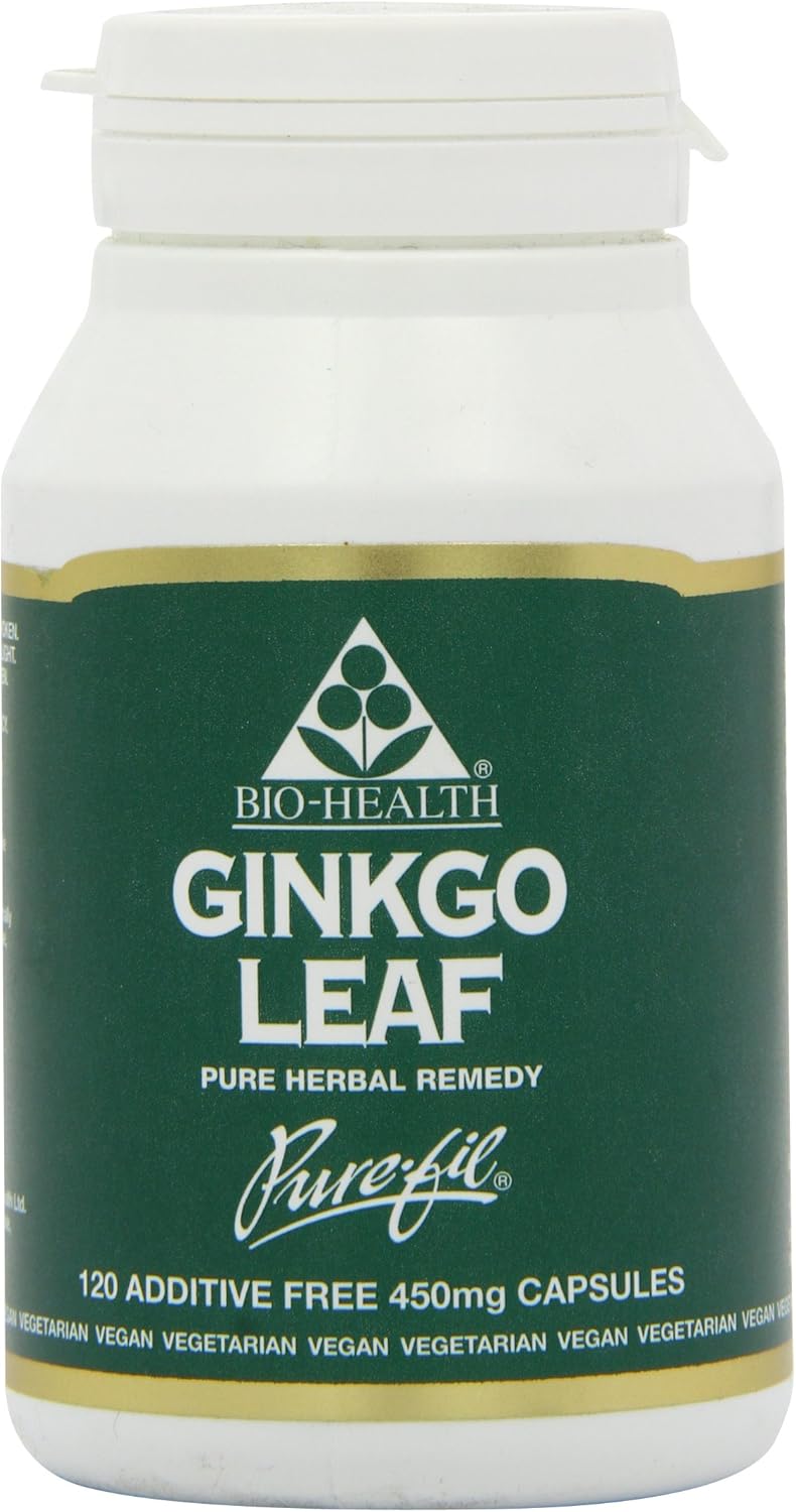 Bio-Health Ginkgo Leaf 450Mg Pure Herbal Food Supplement, Supports Blood Circulation, Mental Performance And Boosts Energy Suitable For Vegetarians And Vegans, Additive Free, 120 Capsules