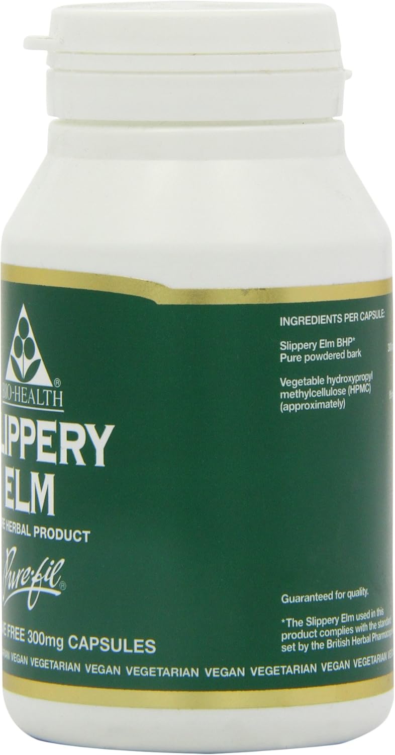 About this item Soothes Digestive Issues: Slippery elm has a reputation for its soothing properties. This powdered bark supplement is designed to support digestive health, potentially alleviating discomfort and supporting a healthy gastrointestinal system. Relief for Coughs and Sore Throats: Experience the soothing effects of slippery elm on respiratory health. This supplement may provide relief for coughs and sore throats, contributing to overall respiratory wellness. 120 Capsules for Lasting Support: Each bottle contains 120 capsules, providing a convenient and lasting supply for your daily health regimen. Incorporate Bio-Health Slippery Elm into your routine for potential relief from digestive issues, coughs, and sore throats. Active ingredients only. Free from synthetics, GMOs, colors, flavors, binders, fillers or additives. Pure-fil products are crafted with compassion, making them suitable for both Vegetarians and Vegans. It's a thoughtful choice, ensuring that a broader audience can benefit from these products without compromising their dietary preferences. Pure and inclusive for everyone! See more product details,Soothes Digestive Issues: Slippery elm has a reputation for its soothing properties. This powdered bark supplement is designed to support digestive health, potentially alleviating discomfort and supporting a healthy gastrointestinal system,Relief for Coughs and Sore Throats: Experience the soothing effects of slippery elm on respiratory health. This supplement may provide relief for coughs and sore throats, contributing to overall respiratory wellness,120 Capsules for Lasting Support: Each bottle contains 120 capsules, providing a convenient and lasting supply for your daily health regimen. Incorporate Bio-Health Slippery Elm into your routine for potential relief from digestive issues, coughs, and sore throats,Active ingredients only. Free from synthetics, GMOs, colors, flavors, binders, fillers or additives,Pure-fil products are crafted with compassion, making them suitable for both Vegetarians and Vegans. It's a thoughtful choice, ensuring that a broader audience can benefit from these products without compromising their dietary preferences. Pure and inclusive for everyone!
