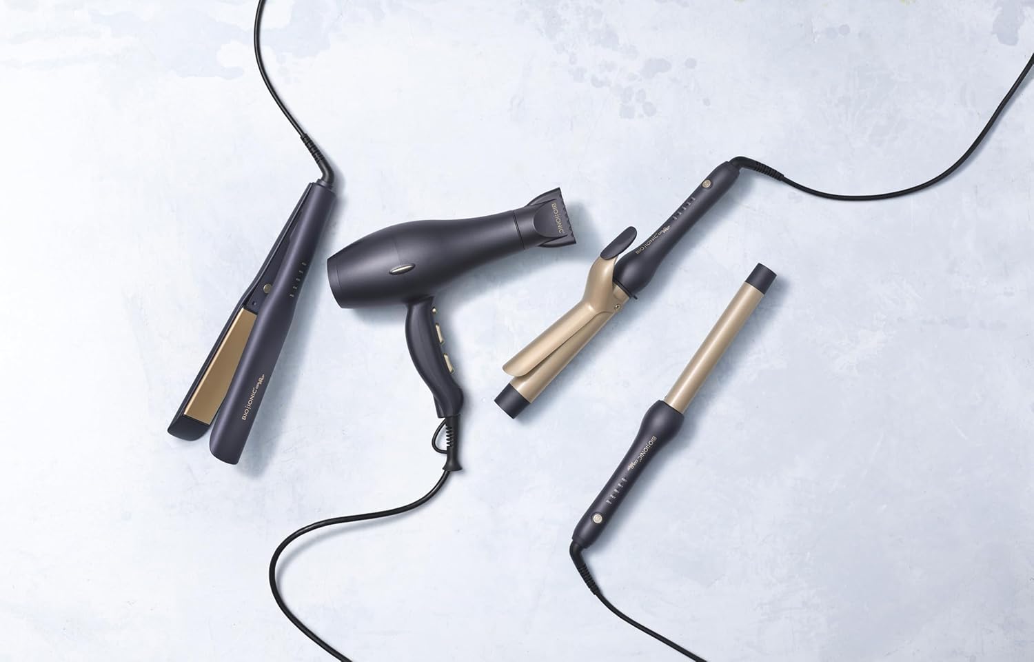 Bio Ionic GoldPro 1" or 1.25β Curling Iron, Blue, Moisturizing Heat & 24K Gold MX, New & Improved 15% Longer Barrel Ceramic Curling Iron, Adjustable Heat, Versatile Curling Wand for Long-Lasting Curls