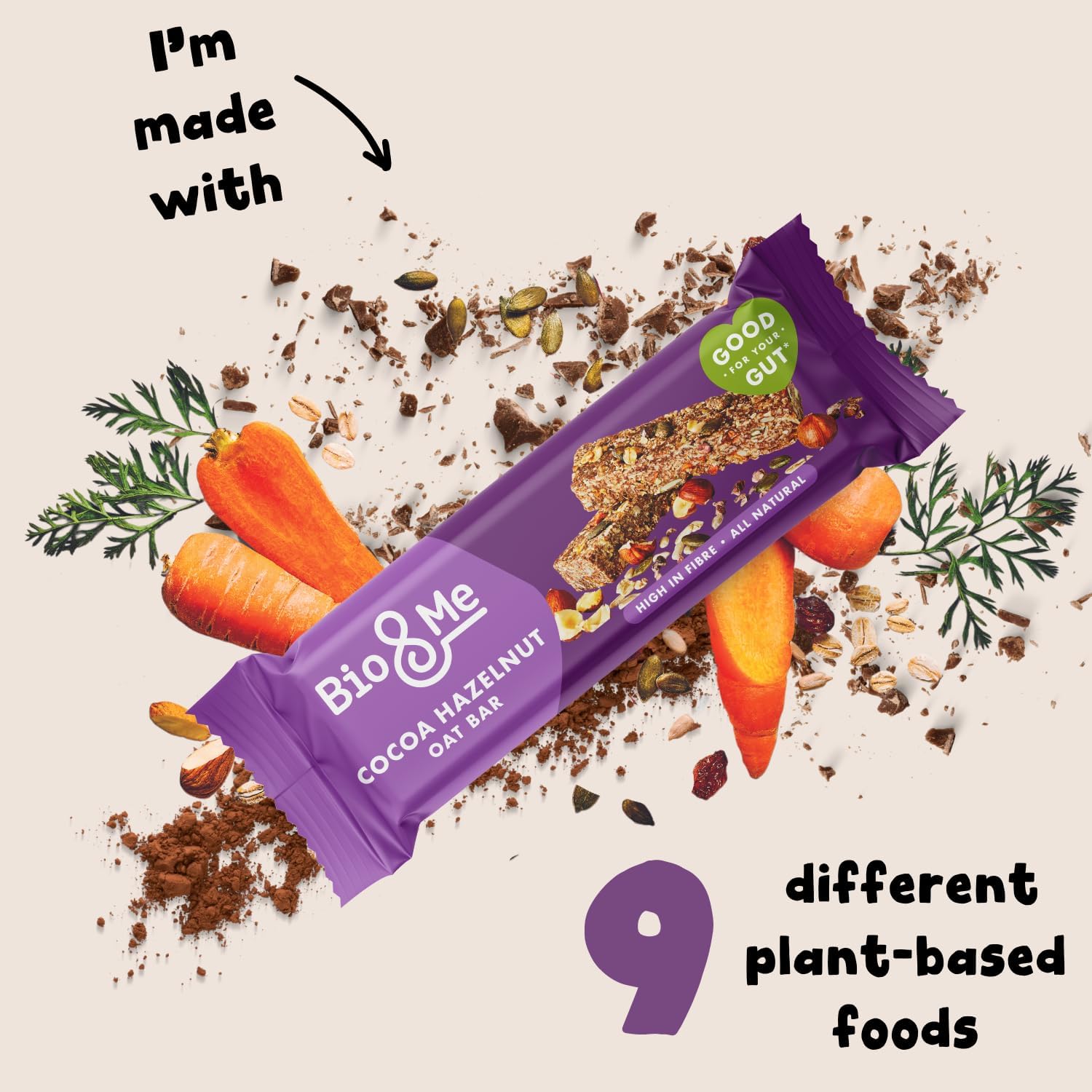 Bio&Me: Cocoa Hazelnut Gut-Loving Oat Bars (18 X 38G) - On-The-Go Snack - Good Gut Health