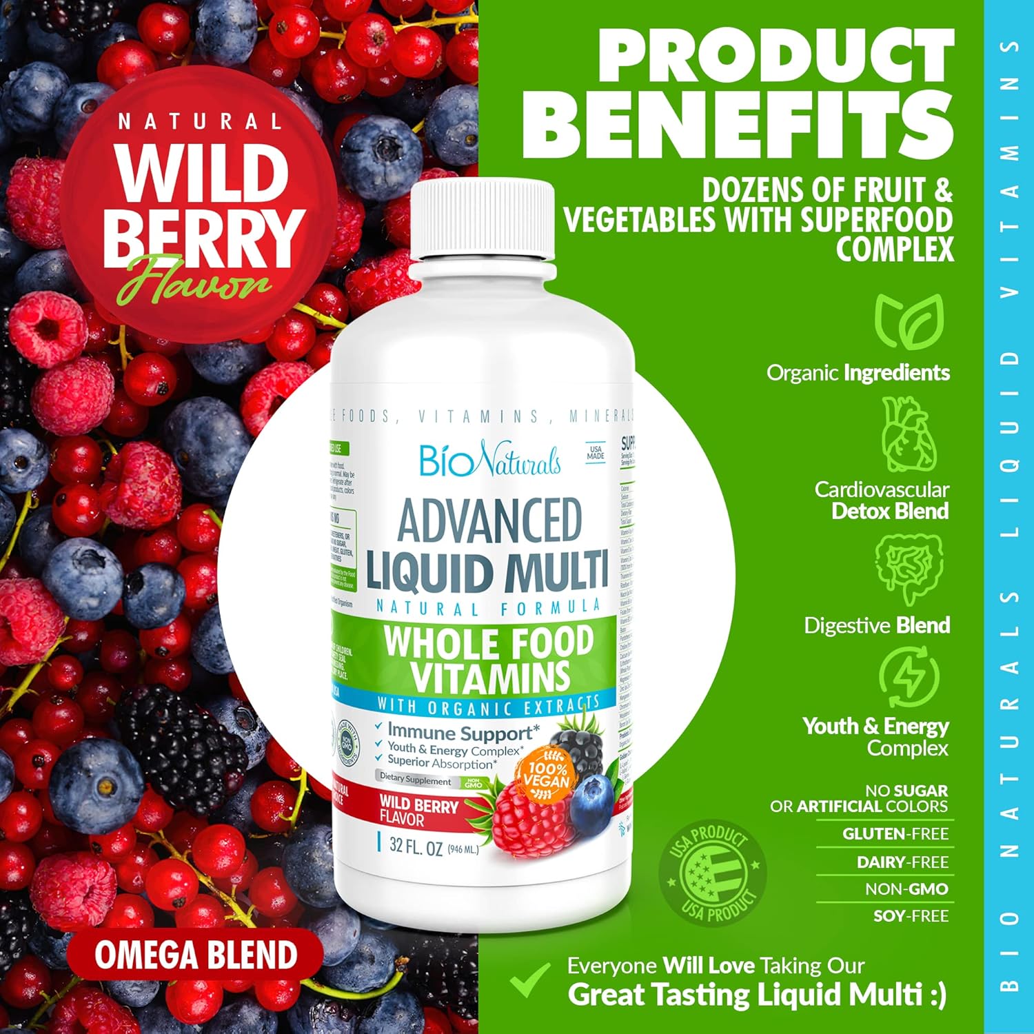 Bio Naturals Liquid Whole Food Multivitamin For Men & Women With Over 100 Ingredients - Superfoods, Omegas, Organic Extracts - 100% Vegan - 32 Oz