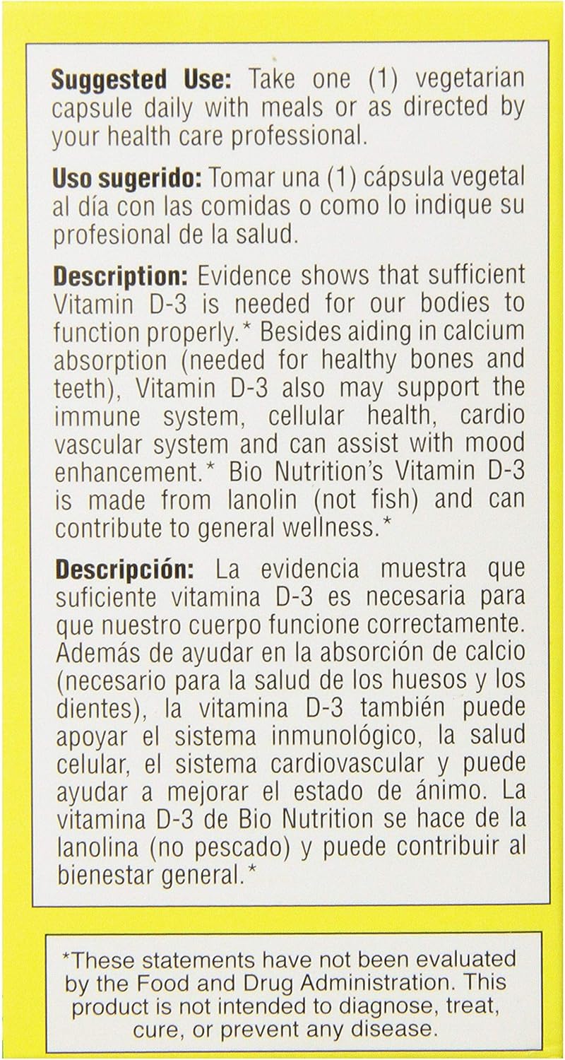 Bio Nutrition D3 12000 Iu Vegi-Caps, 50 Count