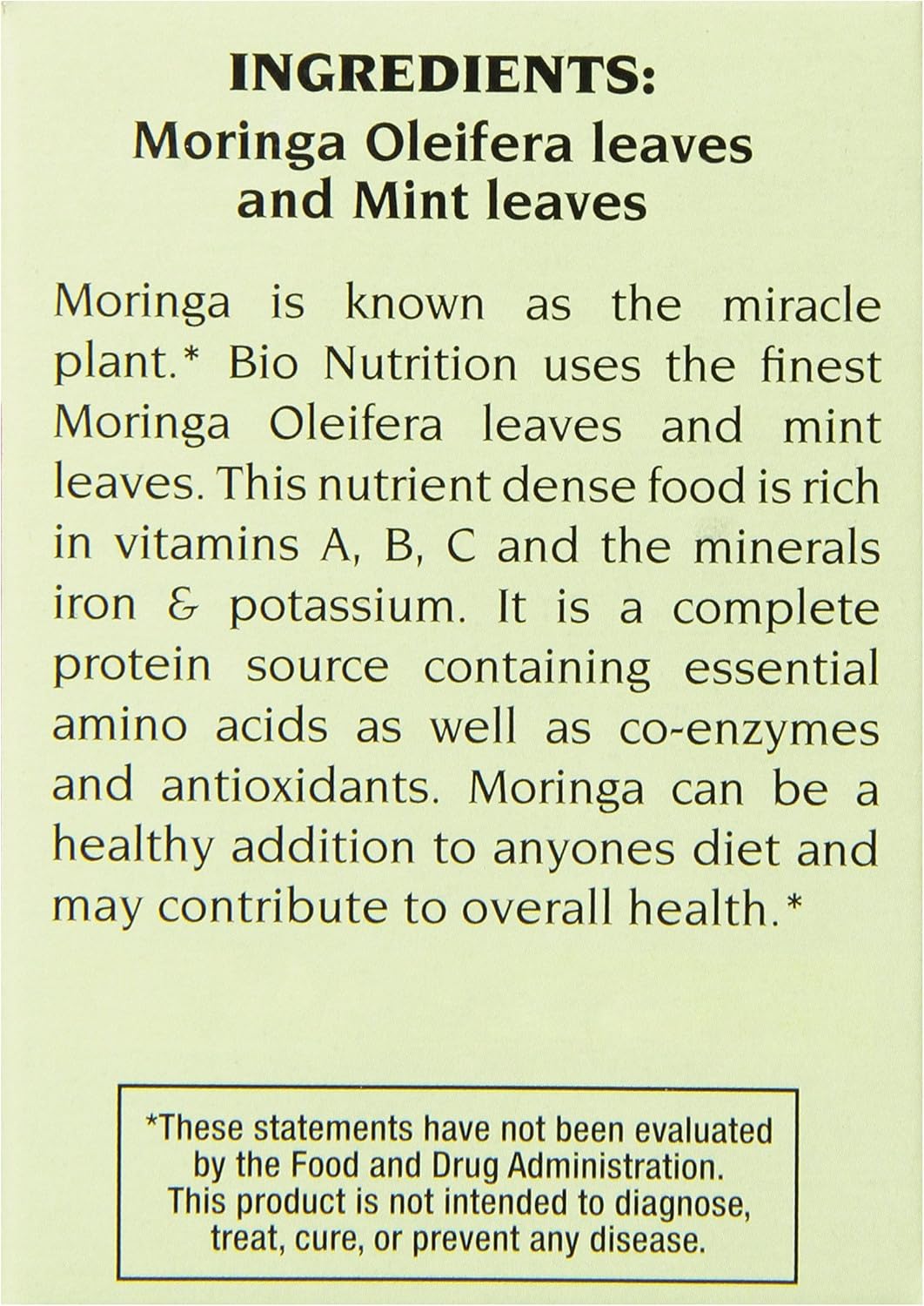 Bio Nutrition Mint Moringa Tea Bags, 2.1 Ounce