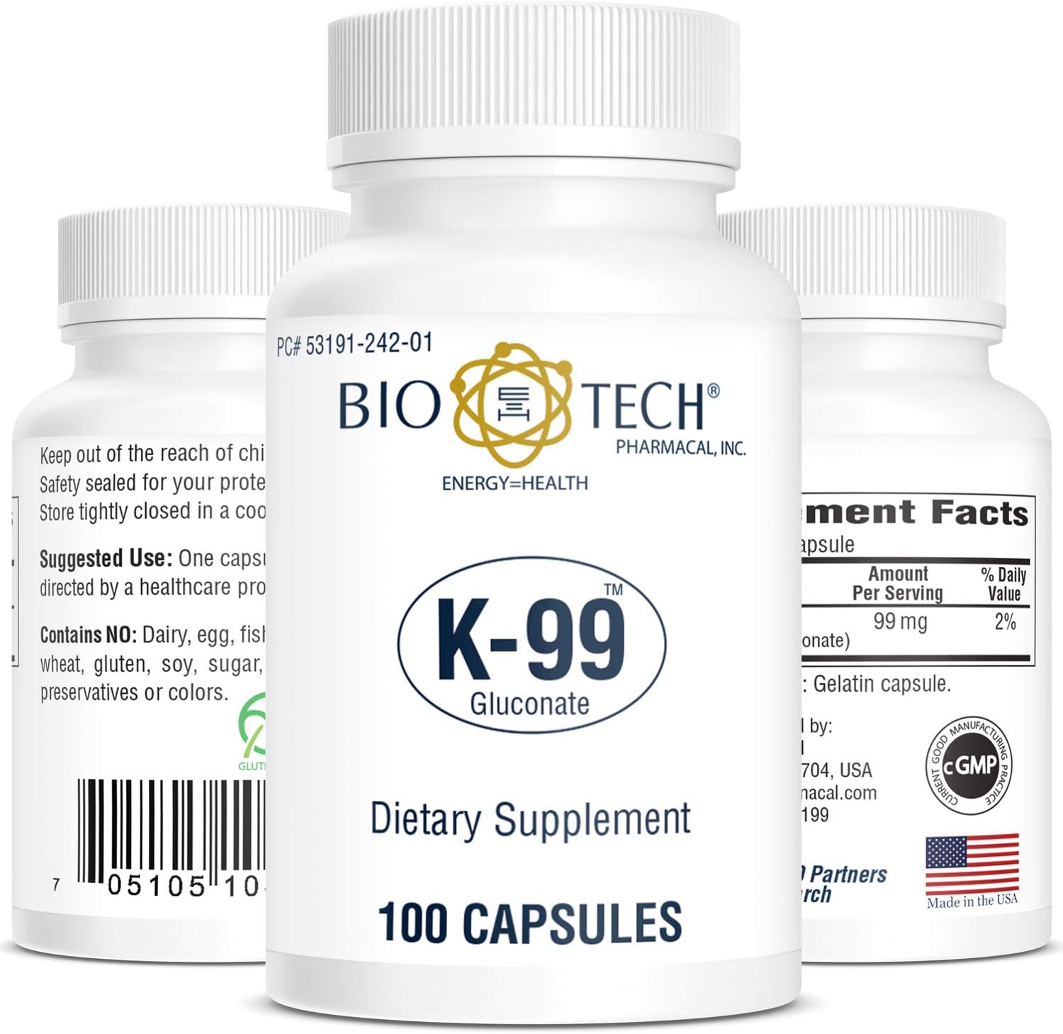 5 >Potassium is found in several different foods, however supplementation may be necessary to ensure optimal levels. - Bio-Tech K-99 (Gluconate) is formulated with potassium gluconate