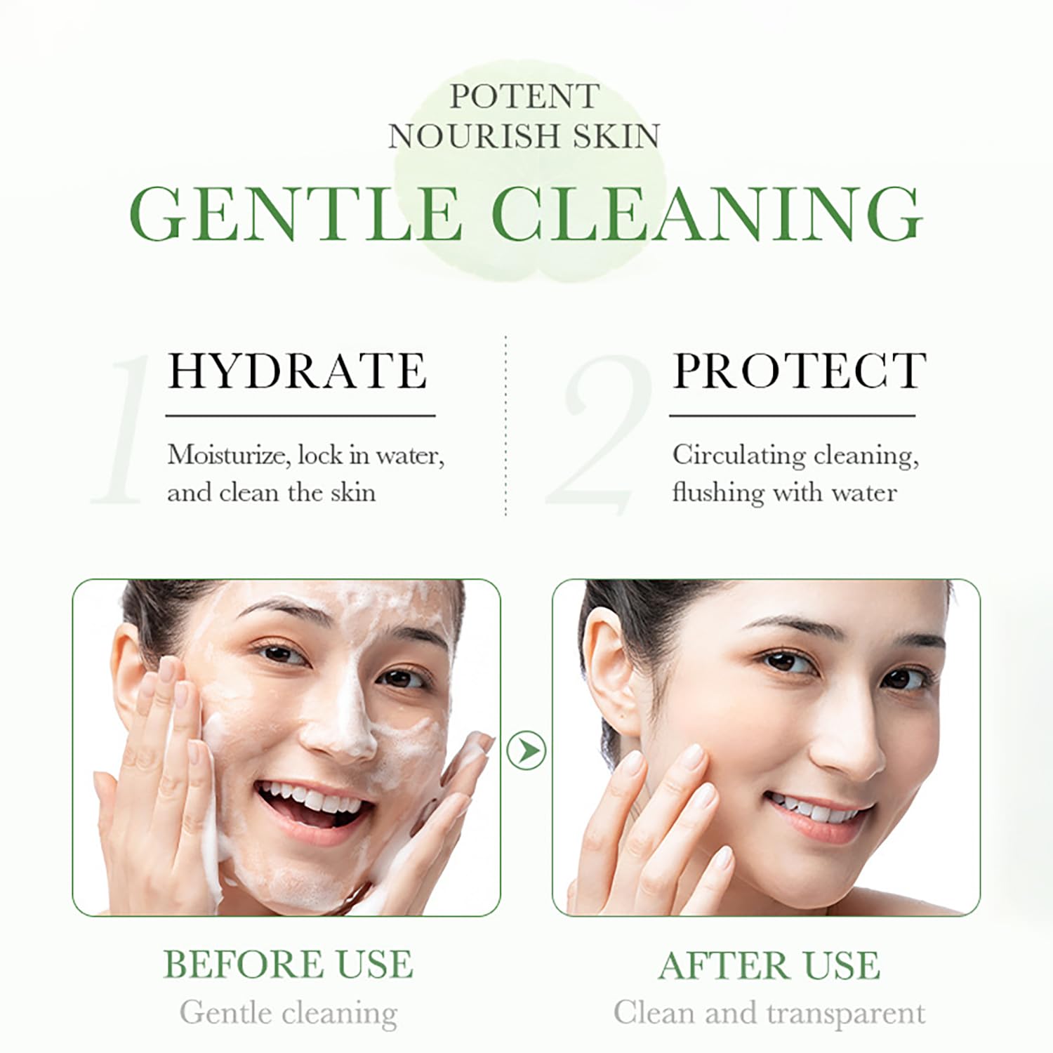 Moisturizing Effect: Hydrating Gentle Face Wash can help you reduce the blackheads on the nose and restore your clean face. Cuts the air, helps eliminate blemishes, and protects the skin