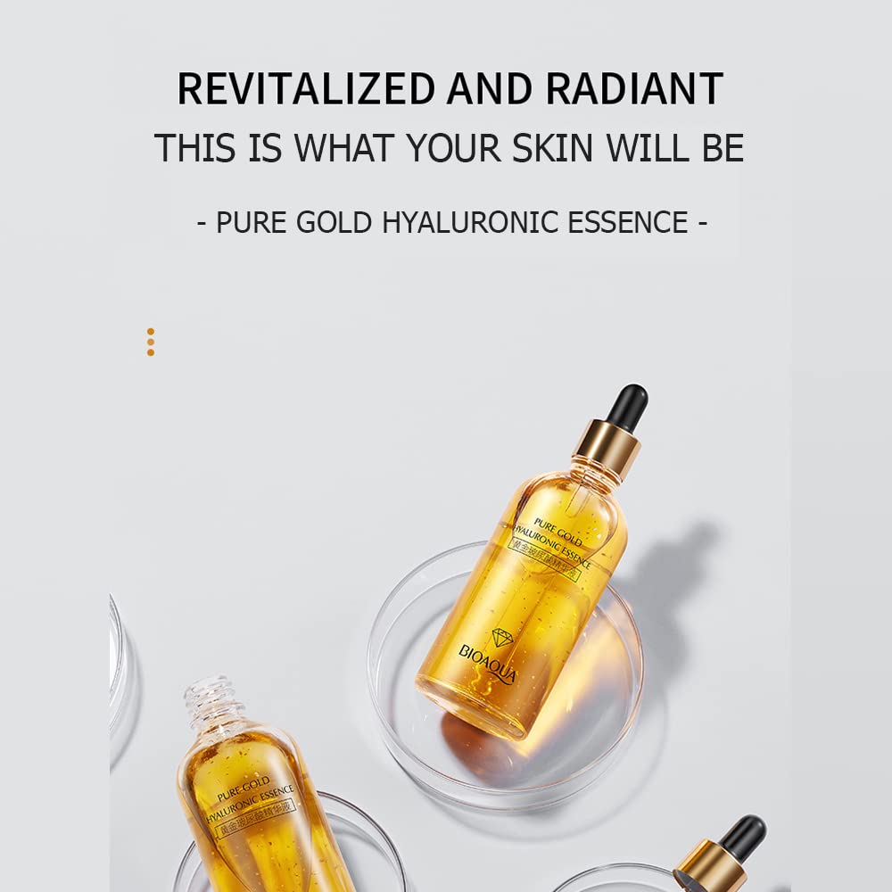Bioaqua Pure 24K Gold Hyaluronic Acid Facial Essence Improve Dry Rough Hydration Moisturizing Plumping Face Skin 100Ml