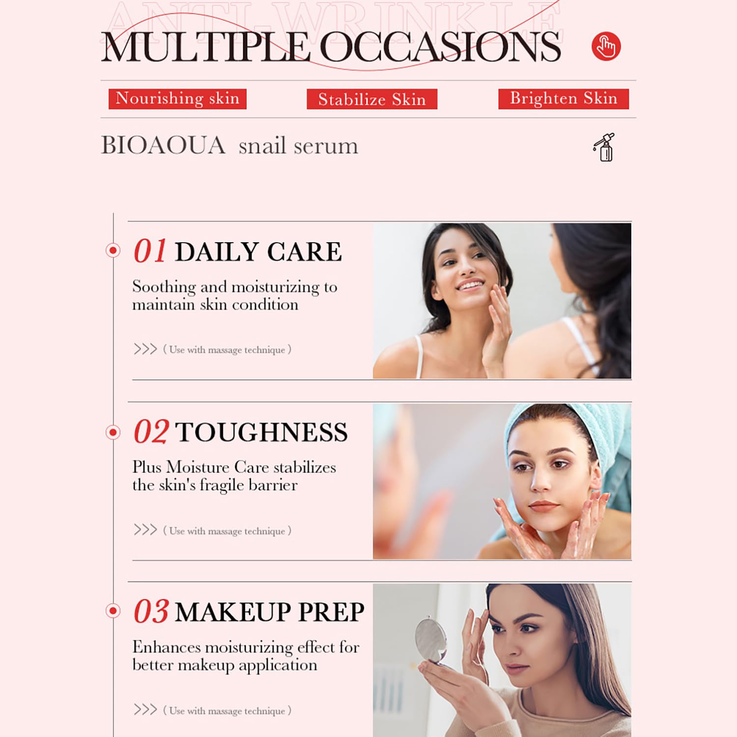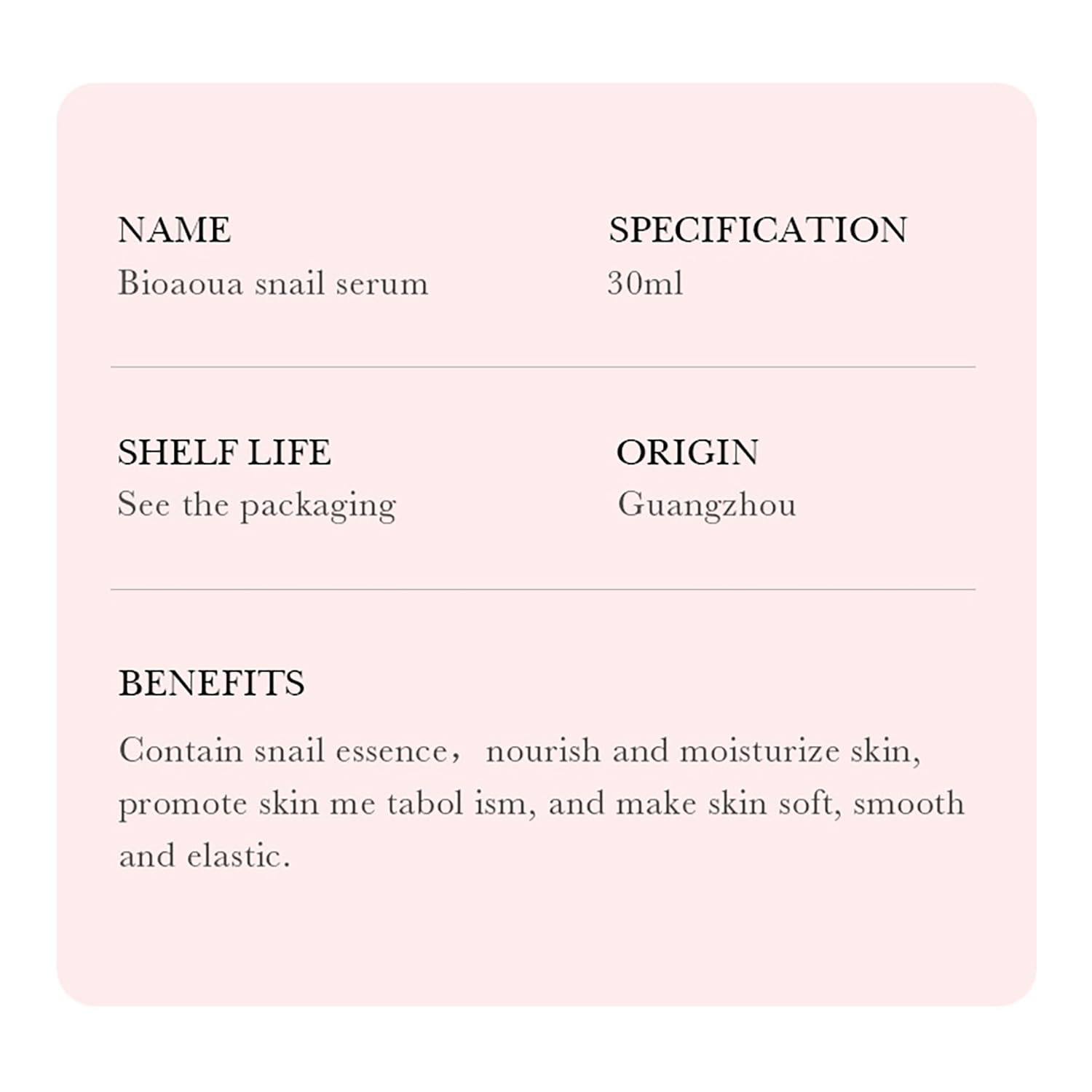 Bioaqua Snail Essence Facial Serum Collagen Protein Nourishing Skin Anti-Wrinkles Moisturizing Smooth Face Skin Care 30Ml / 1Fl.Oz