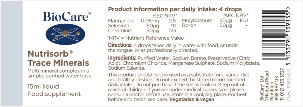 DESCRIPTION : BioCare Nutrisorb Liquid Trace Minerals 15ml