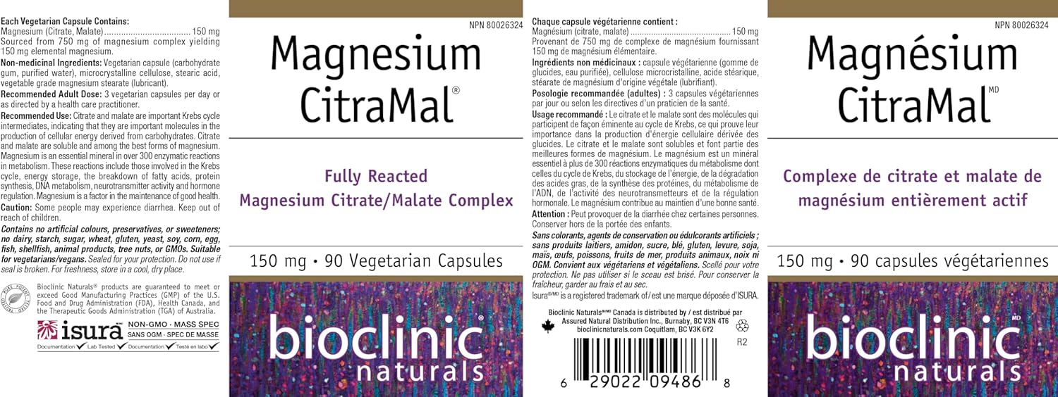 Bioclinic Naturals - Magnesium Citramal 150 Mg. - 90 Vegetarian Capsules
