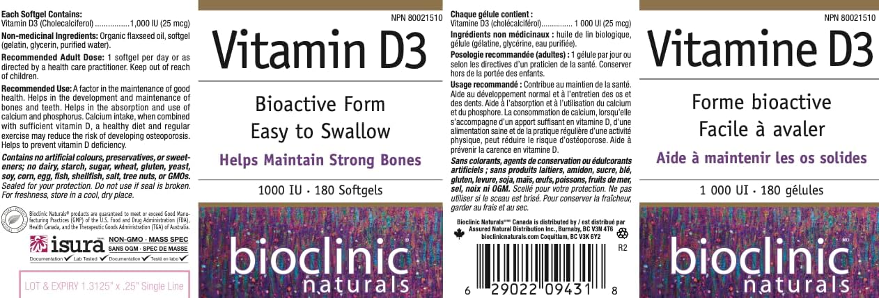Bioclinic Naturals - Vitamin D3 1000 Iu - 180 Softgels