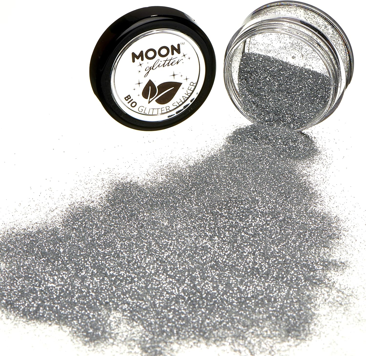 Biodegradable Eco Glitter Shakers By Moon Glitter - Silver - Cosmetic Bio Festival Makeup Glitter For Face, Body, Nails, Hair, Lips - 5G