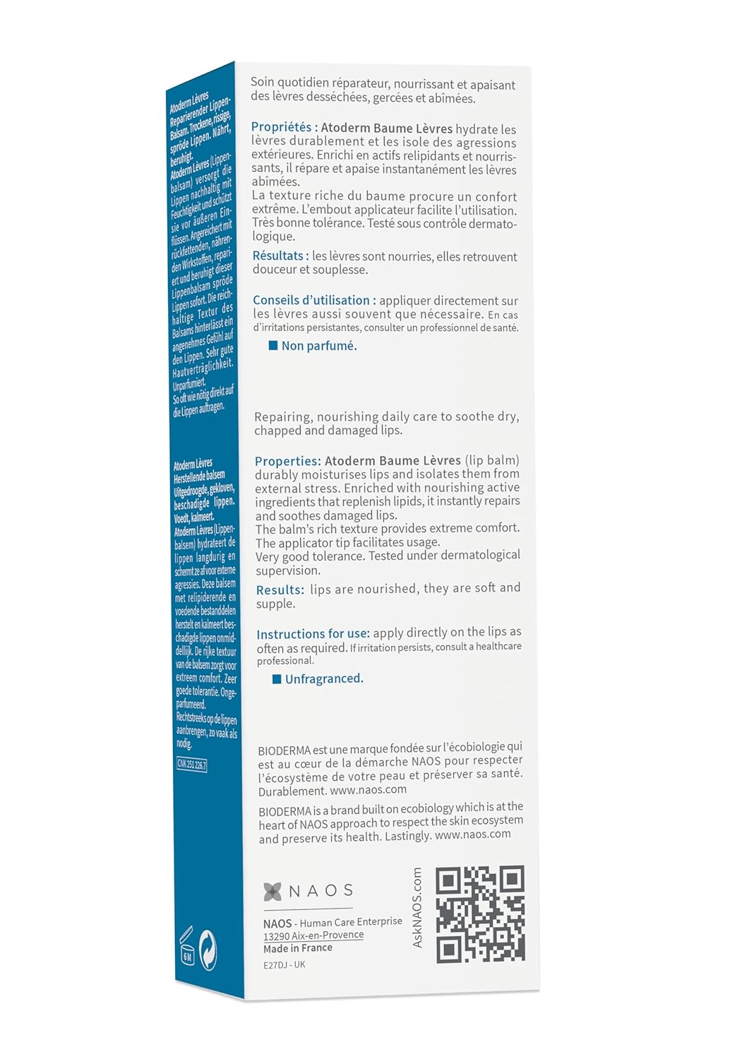 Bioderma Atoderm Lip Balm - Moisturizing and Nourishing Lip Balm for Dry, Chapped Lips