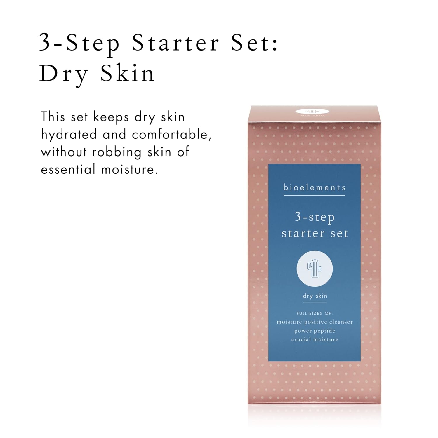 Bioelements 3-Step Starter Set: Dry Skin - Includes Moisture Positive Cleanser, Power Peptide Toner & Crucial Moisture Moisturizer