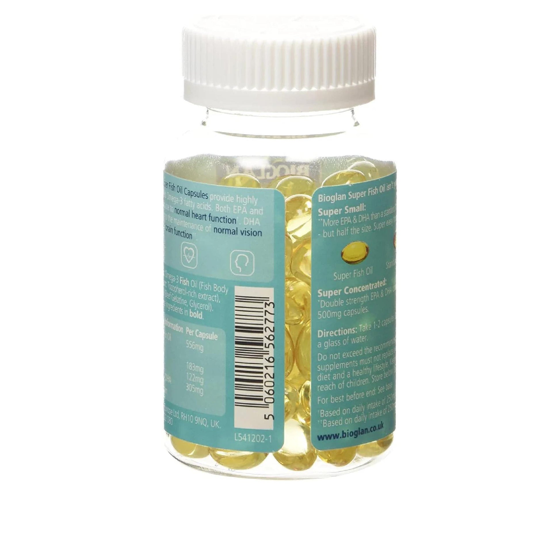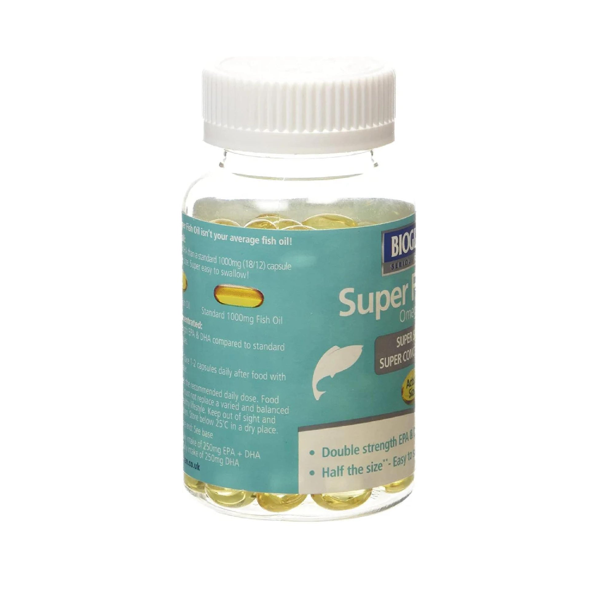 DESCRIPTION : Product Description BIOGLAN SUPER FISH OIL 100'S Ingredients Concentrated Omega-3 FISH oil (FISH Body Oil, Antioxidant: Tocopherol-rich extract), Capsule Shell (Beed Gelatine, Vegetable Glycerol) P.when('A').execute(function(A) { A.on('a:expander:toggle_description:toggle:collapse', function(data) { window.scroll(0, data.expander.$expander[0].offsetTop-100); }); }); Directions Take 1-2 capsules daily after food with a glass of water. Safety Warning Do ot exceed the recommended daily dose. Food supplements must not replace a varied and balanced diet and healthy lifestyle. Keep out od sight and reach of children. Store below 25 degrees C in a dry place. Box Contains 100 Capsules Manufacturer Contact Information Pharmacare Europe Ltd, Unit 3 Dialog, Fleming Way, Crawley, RH10 9NQ See more