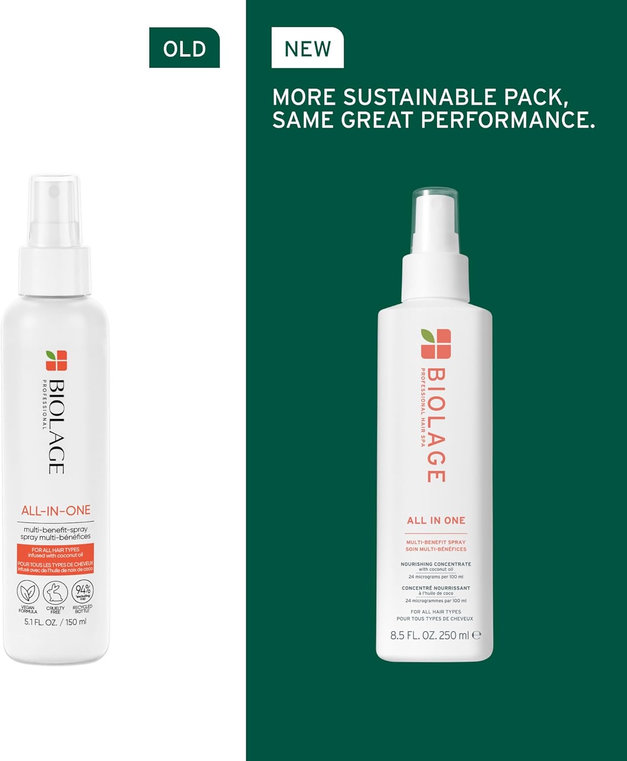 Biolage All-In-One Multi-Benefit Spray, Weightless Nourishment, Enriched With Coconut Oil, For All Hair Types, 250Ml
