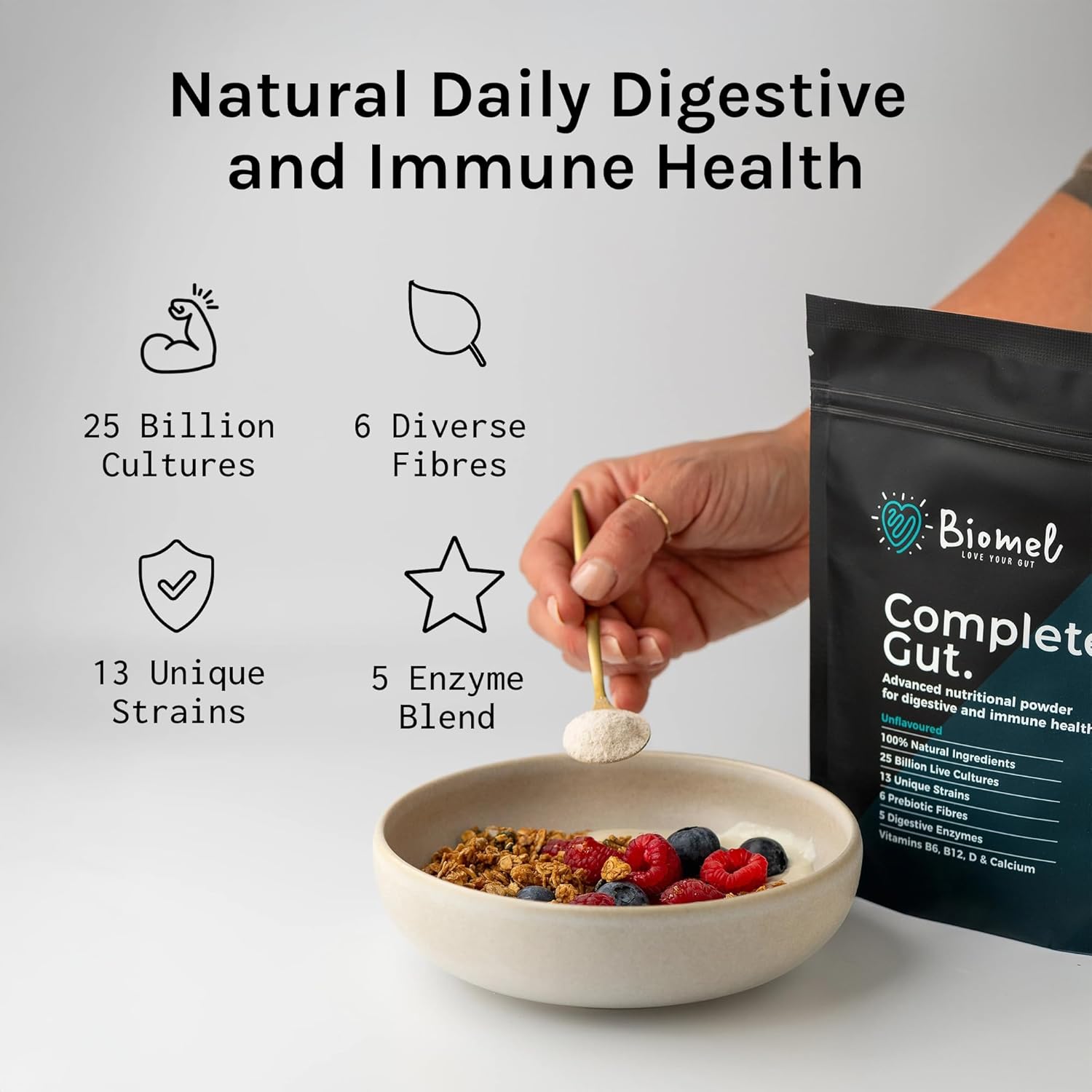 Biomel Complete Gut - Unflavoured - Advanced Gut Health - 150G/30 Servings - Vegan Friendly - Gluten Free - Delicious & Effective