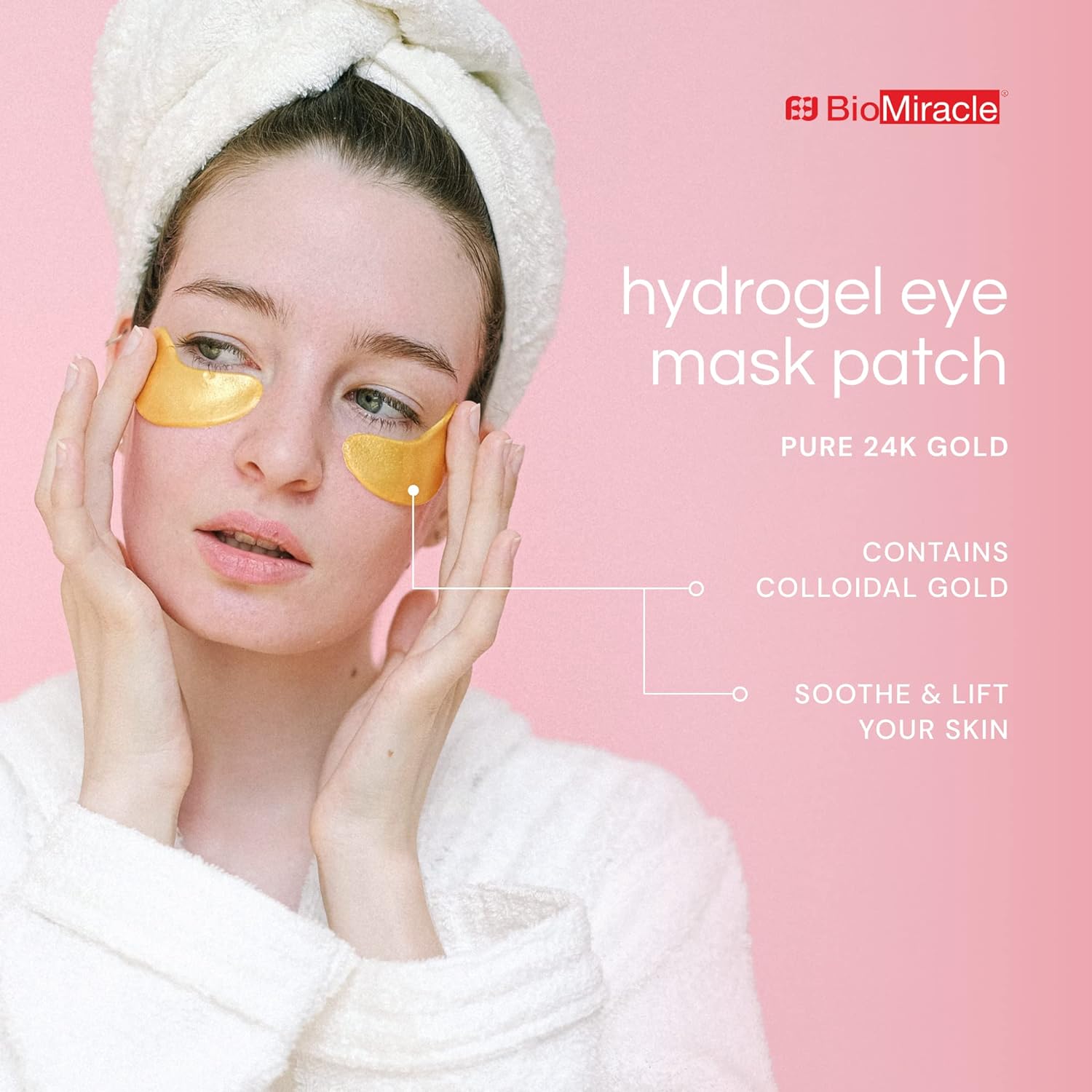 BioMiracle Pure 24K Gold Hydrogel Eye Mask Patch, Under Eye Treatment, Luxury Advanced Bio Formula for Firmness, Moisture, Soothing & Lifting (60 Pieces)