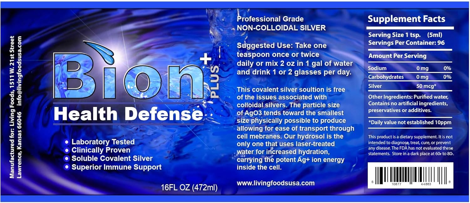 Bion SS Covalent Silver Hydrosol Super Saturated with Ozone Health Defense comes in an 16 fluid ounce screw top bottle
