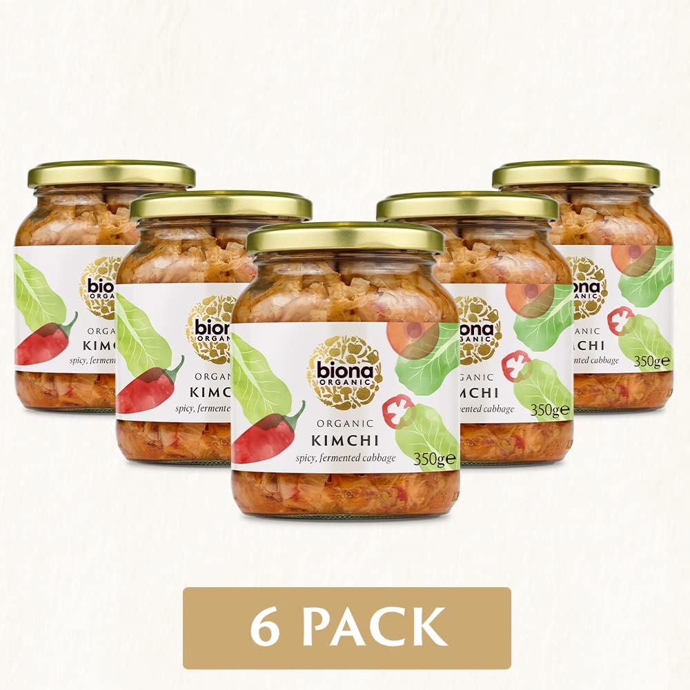 About this item KIMCHI MADE FROM NATURALLY FERMENTED ORGANIC VEGETABLES. Biona Organic Kimchi is made with fresh naturally fermented organic vegetables with a spicy kick. NATURALLY VEGAN. Made from Certified Organic Ingredients including Napa and White Cabbage. Contains 100 Percent vegan ingredients. WARM, SPICY AND TANGY. Warm and spicy with a deep tangy flavour, Biona Kimchi is perfect as a side dish, in salads or for an added kick in stir-fries, noodles and rice FREE FROM CHEMICAL PESTICIDES, HERBICIDES AND NEVER GMO. 100 Percent Completely Natural. Healthy food has its roots in healthy soil. This is why, at Biona Organic, we continually reinvest in the organic farming industry. Whatever the ingredient, our farmers never, ever use chemical pesticides and herbicides or grow genetically modified crops A HEALTHIER FUTURE. Built on an unwavering commitment to 100 Percent organic, ethically and sustainably sourced food, Biona Organic began life on a kitchen table in London 30 years ago, now bringing more than 400 organic products to lovers of good food › See more product details,KIMCHI MADE FROM NATURALLY FERMENTED ORGANIC VEGETABLES. Biona Organic Kimchi is made with fresh naturally fermented organic vegetables with a spicy kick,NATURALLY VEGAN. Made from Certified Organic Ingredients including Napa and White Cabbage. Contains 100 Percent vegan ingredients,WARM, SPICY AND TANGY. Warm and spicy with a deep tangy flavour, Biona Kimchi is perfect as a side dish, in salads or for an added kick in stir-fries, noodles and rice,FREE FROM CHEMICAL PESTICIDES, HERBICIDES AND NEVER GMO. 100 Percent Completely Natural. Healthy food has its roots in healthy soil. This is why, at Biona Organic, we continually reinvest in the organic farming industry. Whatever the ingredient, our farmers never, ever use chemical pesticides and herbicides or grow genetically modified crops,A HEALTHIER FUTURE. Built on an unwavering commitment to 100 Percent organic, ethically and sustainably sourced food, Biona Organic began life on a kitchen table in London 30 years ago, now bringing more than 400 organic products to lovers of good food