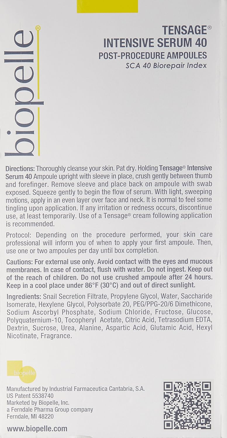 Biopelle Tensage Growth Factor Intensive Serum 40 Post-Procedure or Intensive Boost Ampoules with SCA 40 Biorepair Index, 10 Count