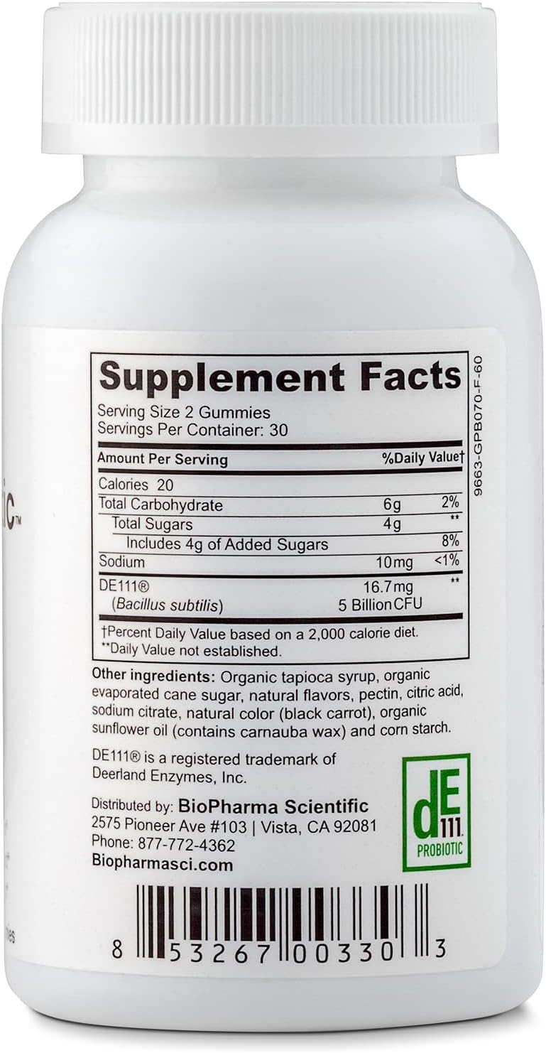 Biopharma Scientific Nanoprobiotic Gummies | 30 Servings | Probiotic Bacillus Subtilis | 5 Billion Cfu