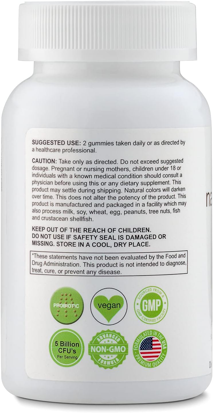 About this item Boost your gut health and keep your digestive tract healthy. Probiotic Gummies taste great, are easy to chew, and don’t require water to take. They’re the good-for-you supplement that you’ll actually look forward to taking 5 billion CFU per serving to support healthy digestion EASY TO ENJOY: Take 2 strawberry flavored gummies per day. We recommend taking first thing in the morning on an empty stomach to enhance complete absorption. THE PUREST SOURCE: Non-GMO project verified, vegan and Star-K Kosher verified. › See more product details,Boost your gut health and keep your digestive tract healthy,Probiotic Gummies taste great, are easy to chew, and don’t require water to take. They’re the good-for-you supplement that you’ll actually look forward to taking,5 billion CFU per serving to support healthy digestion,EASY TO ENJOY: Take 2 strawberry flavored gummies per day. We recommend taking first thing in the morning on an empty stomach to enhance complete absorption,THE PUREST SOURCE: Non-GMO project verified, vegan and Star-K Kosher verified