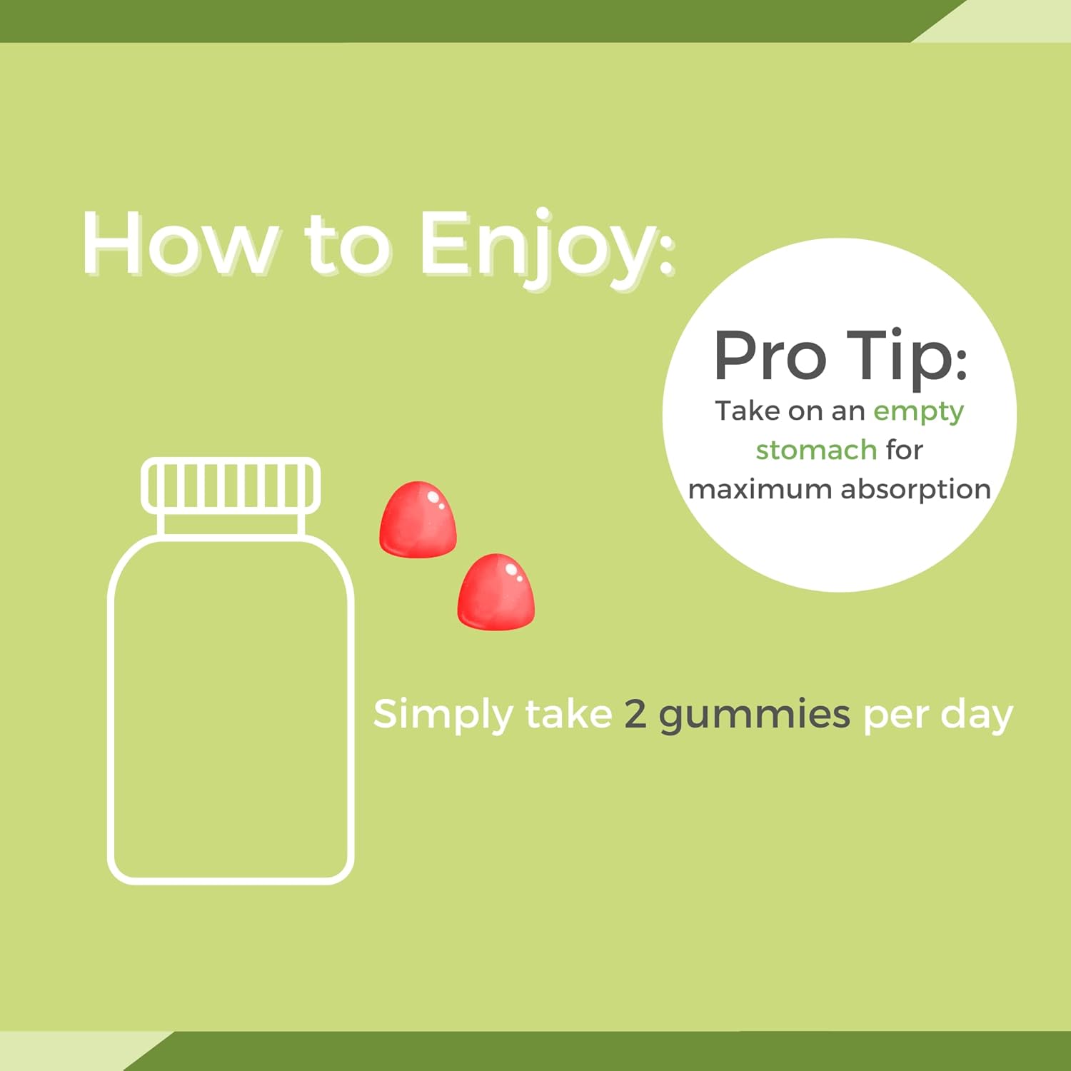 EASY TO ENJOY: Take 2 strawberry flavored gummies per day. We recommend taking first thing in the morning on an empty stomach to enhance complete absorption