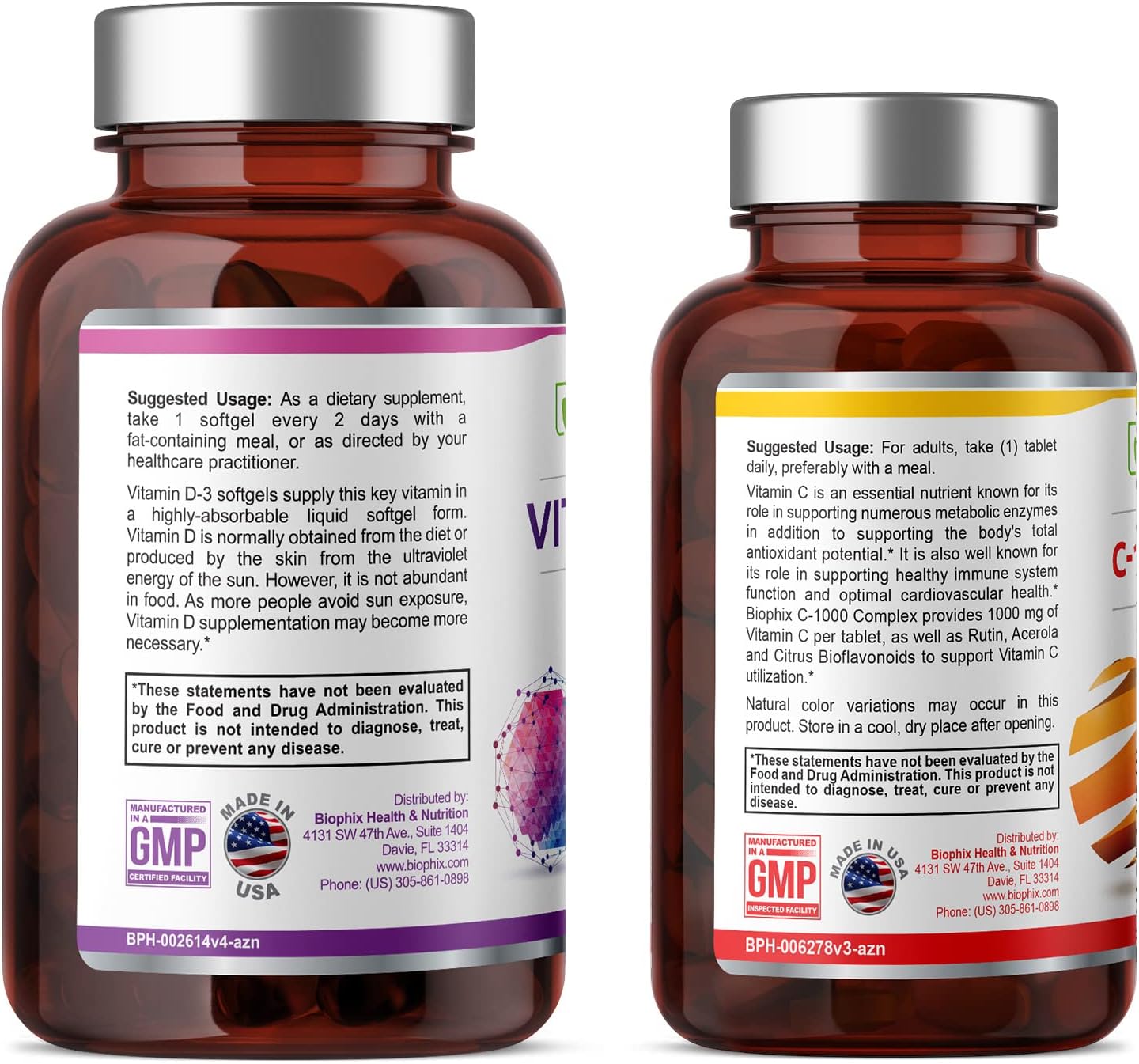 biophix Vitamin D-3 5000 IU 360 Softgels - Free Vitamin C-1000 30 Tablets - High-Potency in Extra Virgin Olive Oil Non-GMO Soy-Free Supports Strong Bones Immune Health