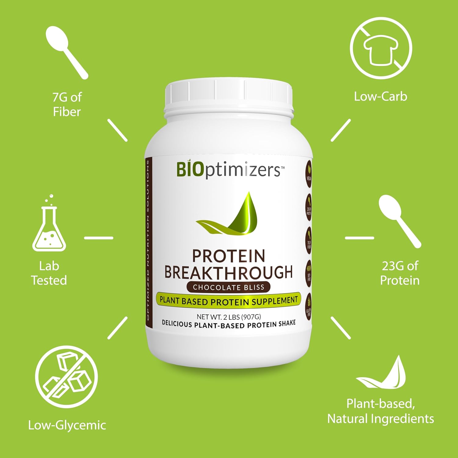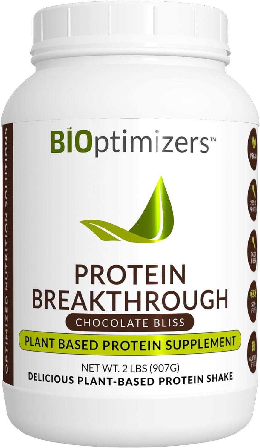 DESCRIPTION : BiOptimizers Protein Breakthrough - Vegan Protein Powder Meal Replacement Shake - Pea Protein, Pumpkin Seed, Hemp - Low Carb Gluten Free Plant Based - Chocolate Bliss (907 g)