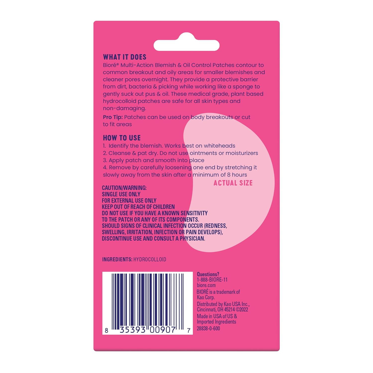 Next Time You’Ve Got A Big Blemish Problem, Don’T Pick It–Slap It With Our Hydrocolloid Blemish Patch And See Visible Results Within 8 Hours. Biore Multi-Action Blemish & Oil Absorbing Patches Contour To Your Breakout And Oily Areas To Get You Smaller Blemishes And Clearer Pores Overnight While You Sleep. Each Large Blemish Patch Provides A Protective Barrier From Dirt, Bacteria And Picking While Working Like A Sponge To Gently Absorb Pus And Oil. Are You A Picker We Get It! This Hydrocolloid Patch Is Perfect For Helping You Leave That Area Alone To Heal Properly. Outta Sight, Outta Mind! Made With Medical Grade, Plant-Based Hydrocolloid, This Patch Is Safe For All Skin Types And Is Non Damaging. These Ultra-Thin Blemish Patches Are Great For All Skin Tones, Blend Into Skin, And Can Be Worn Day Or Night. Because They Blend In With Your Skin And Are So Comfortable To Wear, They Make A Great Day Time Blemish Patch And An Ideal Night Time Blemish Patch Too. Use It As A Blemish Spot Treatment To Help Heal Cluster Breakouts Or Just Absorb Excess Oil In The T-Zone That You Can Wear Right Under Your Makeup. To Use One, Clean And Pat Dry The Whitehead Or Cluster Of Blemishes You Want To Treat. Apply The Hydrocolloid Patch And Smooth It Into Place. Let It Work While You Sleep, No More Messy Blemish Creams On Your Pillow! Carefully Peel Away The Blemish Patch After At Least 8 Hours. You’Ll See Visible Results, Like Less Redness, Smaller Blemishes, And Clearer Pores. It’S Important To Know This Is A Patch For Whiteheads, Not For Blackheads. Go Head–Break Out Of Your Pattern Of Breakouts. You’Re Within 8 Hours Of Quicker Healing And Smoother Skin For Your Biggest Problem Areas