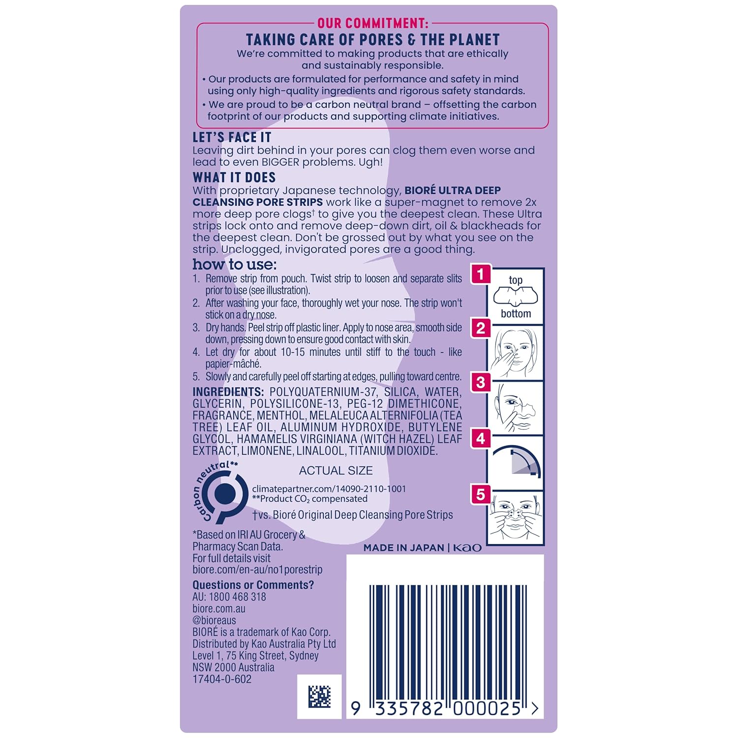 Remove Blackheads And Shrink The Size Of Pores With Bioré Blackhead Reducing Deep Cleansing Pore Strip. These Deep Cleansing Nose Strips Target Blackheads And Unclog Pores For Healthy Looking Skin. Convenient And Easy To Use, These Pore Strips Can Be Used 1X Per Week For The Deepest Clean. Unlike Other Wannabe ‘Pore Strips’, Only Bioré Deep Cleansing Pore Strips Use Patented C-Bond Technology To Bind To Blackheads And Impurities, Not To Skin. These Strips Are Super Magnetic To Safely And Effectively Remove Dirt, Oil, And Even Stubborn Blackheads. Bioré Deep Cleansing Pore Strips Leave Skin Feeling Cleaner With Visibly Smaller Pores After Continuous Use. A Dermatologist-Tested Way To Remove Blackheads And Purify Pores. Satisfaction Guaranteed
