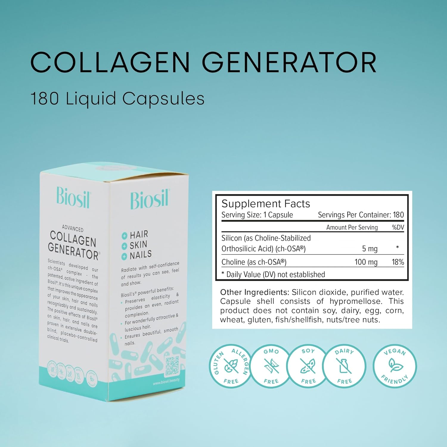 Biosil Collagen Generator - 180 Liquid Capsules - With Patented Ch-Osa Complex - Generates & Protects Your Own Collagen - Gmo Free - 90-Day Supply