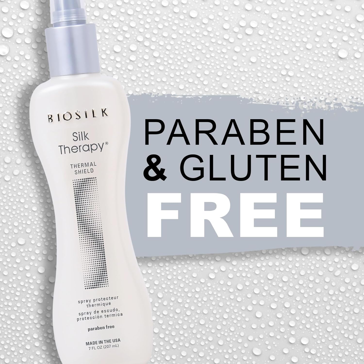 BioSilk Silk Therapy Thermal Shield helps shield hair from thermal damage from even the hottest flat and curling irons. Provides long-lasting styling results with ultimate shine,HAIRSPRAY FOR HEAT PROTECTION: The Thermal Shield Protection Spray offers complete heat protection. It utilizes silk & other protecting ingredients to help shield hair from thermal damage while giving long-lasting styling results with shine,SILK THERAPY: In 1986, Farouk Shami discovered the benefits of silk & how it could be used for hair. He knew that women wanted their hair to be shiny, healthy looking & conditioned. He found that Silk was capable of solving these 3 issues,BIOSILK HAIRSPRAYS: BioSilk hairsprays help hold styles for long-lasting wear while adding brilliant shine,HOW TO USE: Section hair and spray evenly over dry hair. Use heating tools and style as desired,BIOSILK: The quest for healthier hair is how BioSilk Silk Therapy emerged in 1986. The creation of the BioSilk Silk Therapy Original treatment has led to the development of a full range of BioSilk hair products