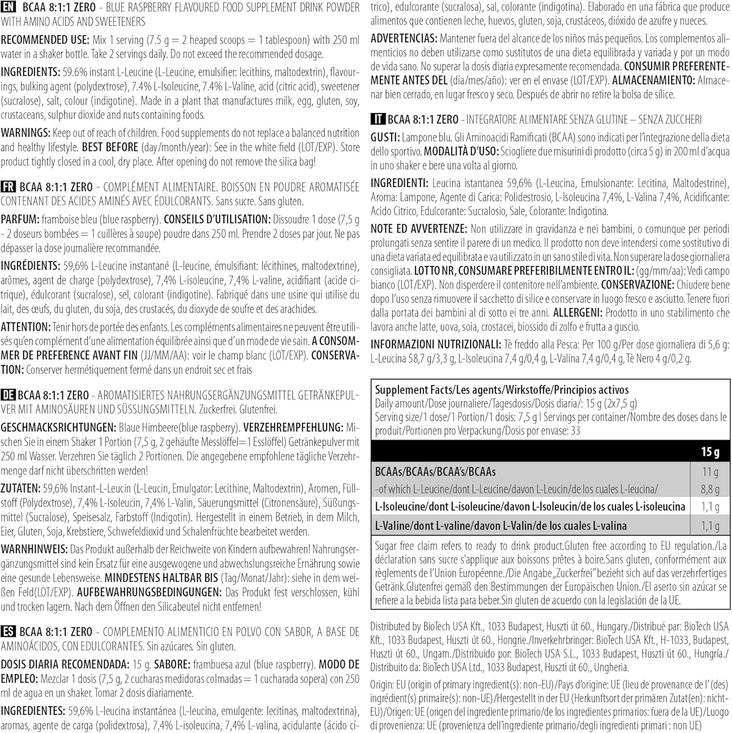 1 x BioTechUSA BCAA 8:1:1 Zero Powder (250 g, Blue Raspberry Flavor)