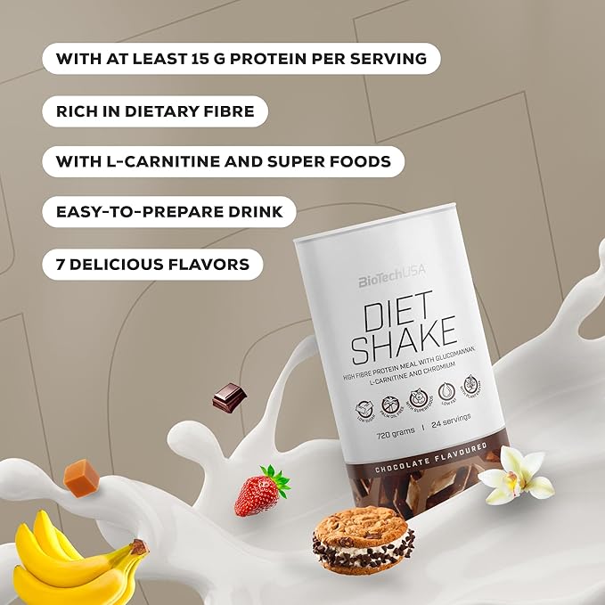 Biotechusa Diet Shake | High-Protein, Low-Fat | With Superfoods, Chromium, Glucomannan, L-Carnitine | Palm Oil-Free, 720 G, Chocolate