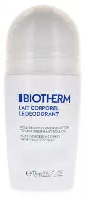 Biotherm Lait Corporel The Deodorant 75Ml Is A Roll-On Anti-Perspirant Deodorant That Offers A 72H Efficiency. It Is Suitable For All Skins, Even The Most Sensitive. Formulated With Citrus Essences, It Leaves The Skin Slightly Fragrant. Made In France