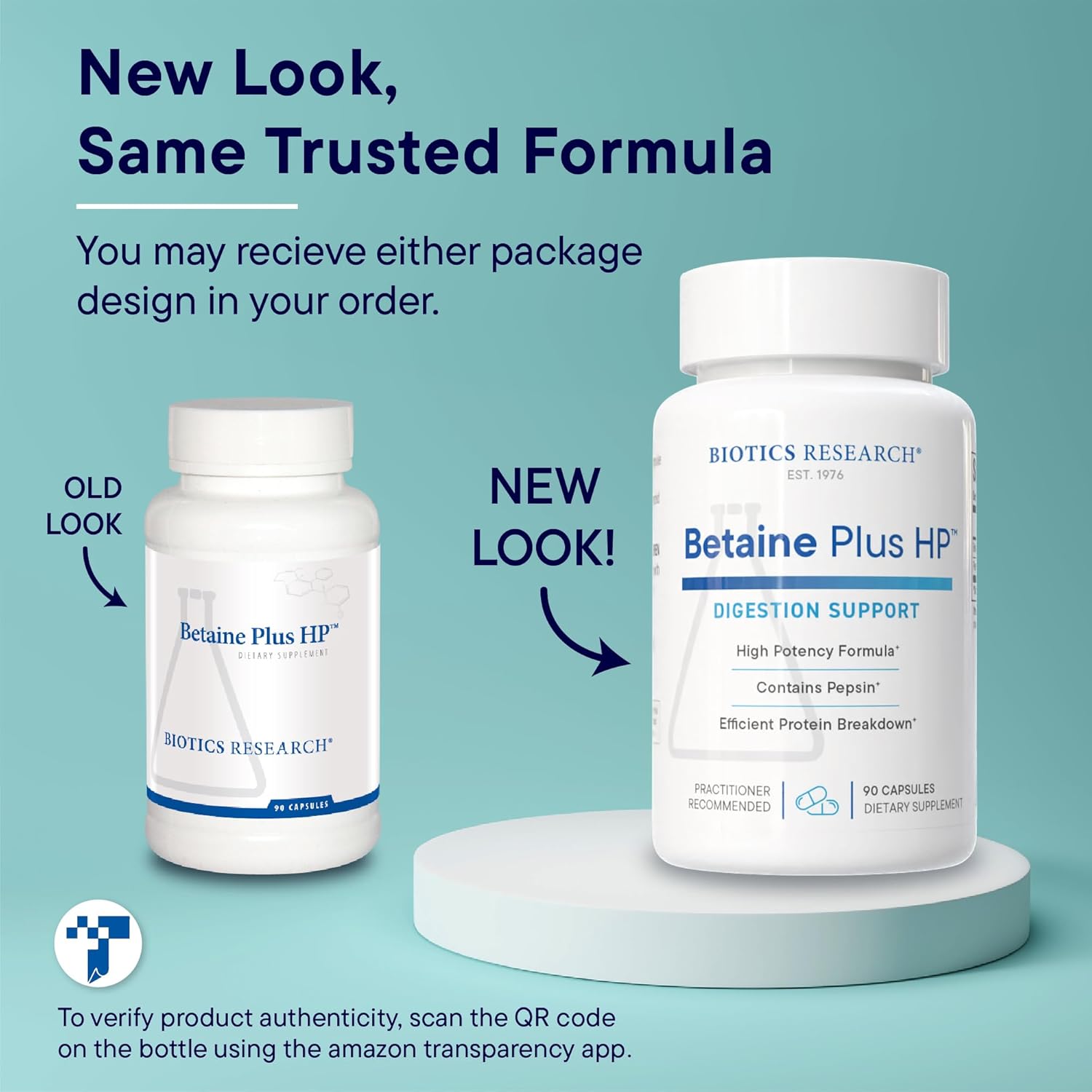 Biotics Research Betaine Plus Hp - High Potency Hydrochloric Acid Supplement, Supports Digestive Function 90 Capsules
