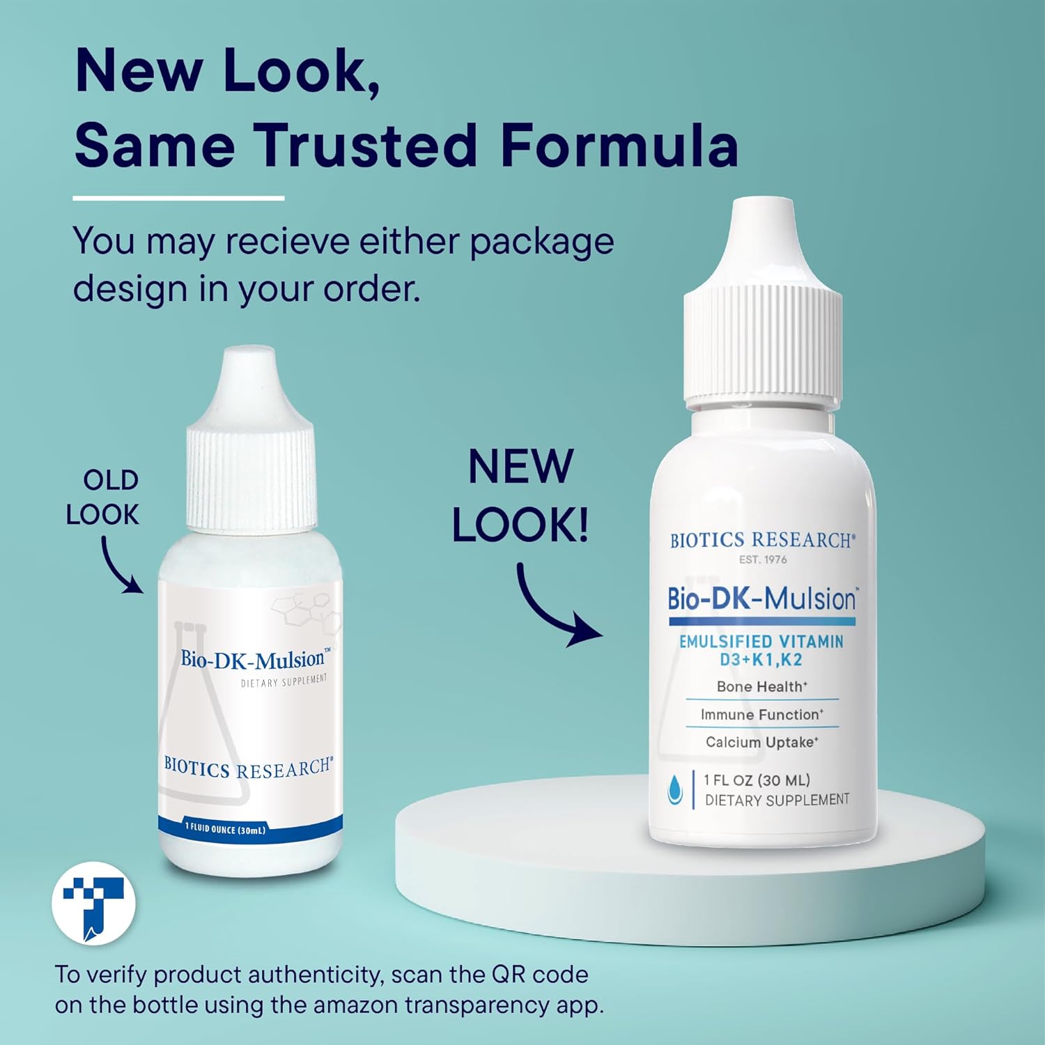 Biotics Research Bio-Dk-Mulsion™–Emulsified Liquid Vitamin D And K, D3 Drops 125 Mcg & Vitamin K (K1, K2) 300 Mcg Mk-7–Supports Stronger Bones, Musculoskeletal Strength, Healthy Heart & Bmi 1 Fl Oz