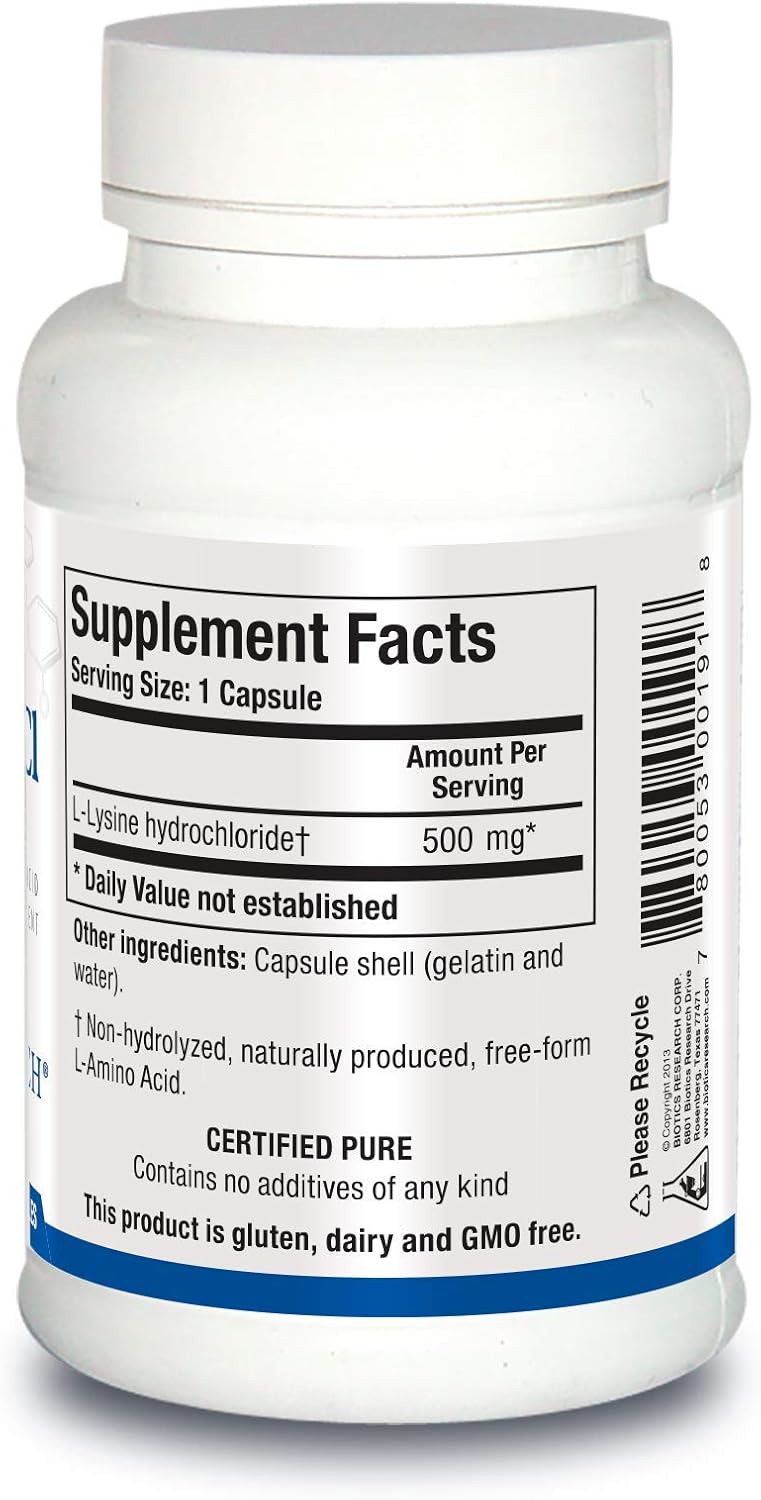 Biotics Research L Lysine Hci Amino Acid L Lysine Supplement Promotes Energy, Boosts Immunity, Stimulates Calcium Absorption 100 Capsules