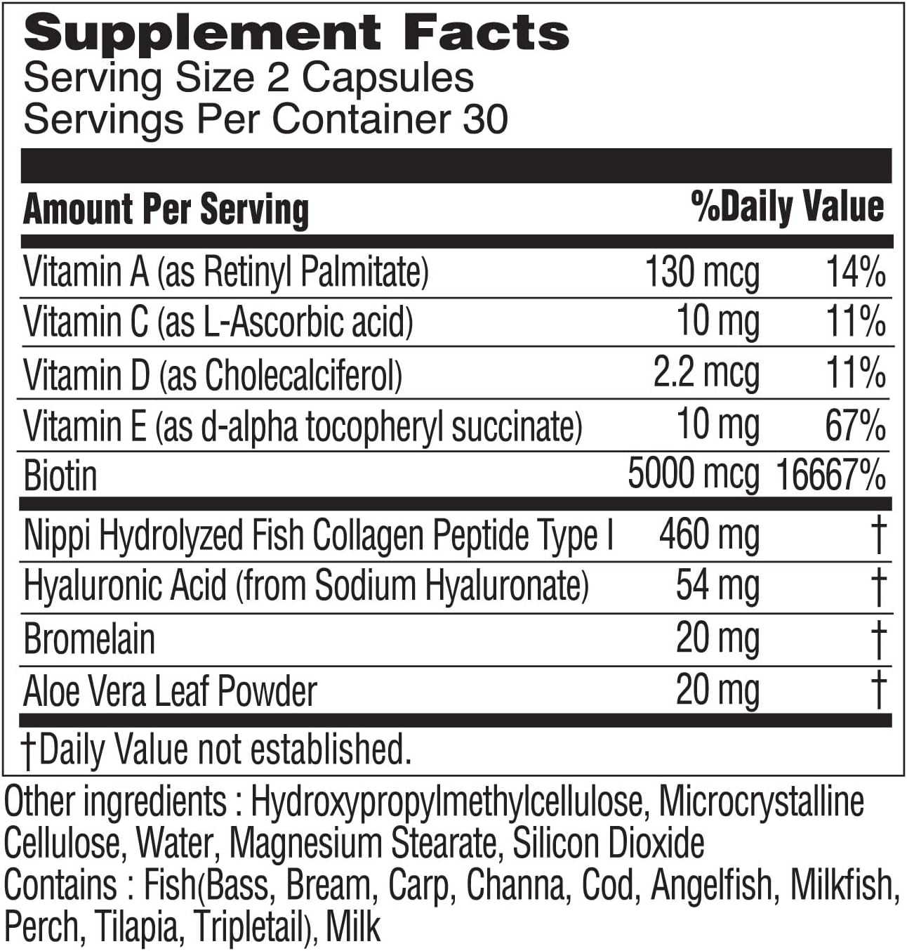 Get ready to rock healthy hair, skin, and nails with our Biotin Pills! Our unique blend of 5,000mg of Biotin, Nippi Peptide Collagen,vitamins, hyaluronic acid, and aloe vera work together to give you the ultimate beauty support formula. Don't settle for lackluster beauty -achieve strong, luscious hair, glowing skin, and resilient nails. Our powerful beauty support formula is designed to say goodbye to brittle nails, dry skin, lackluster hair, so you can embrace healthy, radiant beauty every dayULTIMATE BEAUTY SUPPORT: Transform your skin into a glowing, radiant masterpiece, your hair into luscious locks that will turn heads, and your nails into strong and resilient beauties with our powerful Biotin supplement pills. Biotin is essential for healthy hair, skin, and nails, Nippi Peptide Collagen known for its superior digestibility. Vitamins A, C, D, and E work together to support overall skin health, while hyaluronic acid and aloe vera help to hydrate, plump, and soothe the skinLEVEL UP: Take your beauty regimen to the next level with our plant-based, non-GMO health supplement that contains the best quality ingredients. We're not content with just providing you with the best quality ingredients, we are taking things to the next level. Our innovative formula goes beyond ordinary biotin supplements, as we use bromelain to maximize the absorption of collagen in your body, ensuring that your body can make the most of this powerful proteinBrought to you from the best - KORESELECT, a health brand designed to help modern people maintain their wellness with our scientifically-backed herbal ingredients. We provide solutions to major health concerns of modern people and our products are created using herbs and natural materials that won't burden the body. * Gluten-free, Allergen friendly * GMP Quality Assured * Packaged in the USA