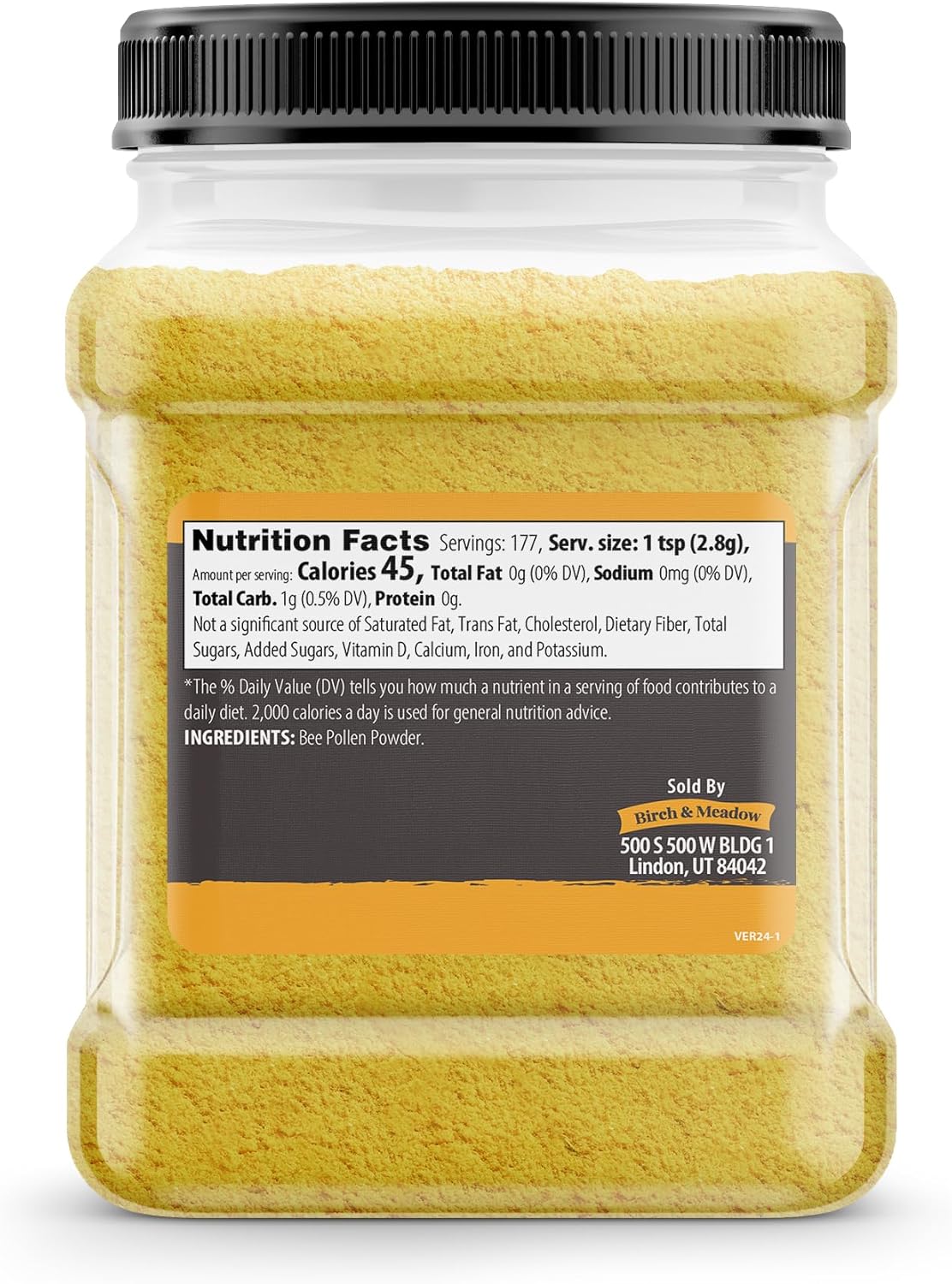 Birch & Meadow Bee Pollen Powder, Natural & Nutritious, Slightly Sweet Taste, Oatmeal & Cereal (1.1 Pound)
