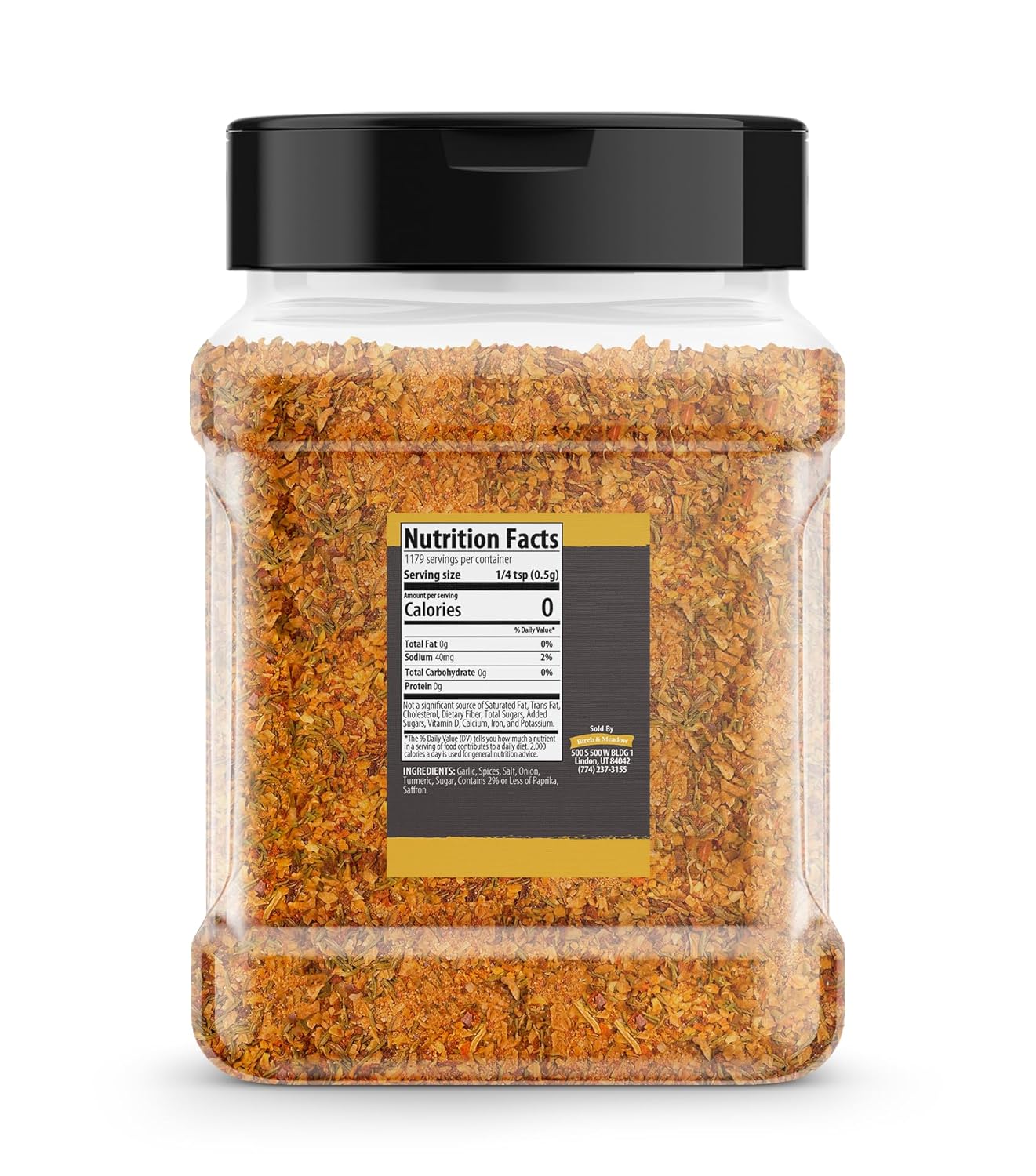 Includes a mix of garlic, salt, turmeric, saffron, and other spices